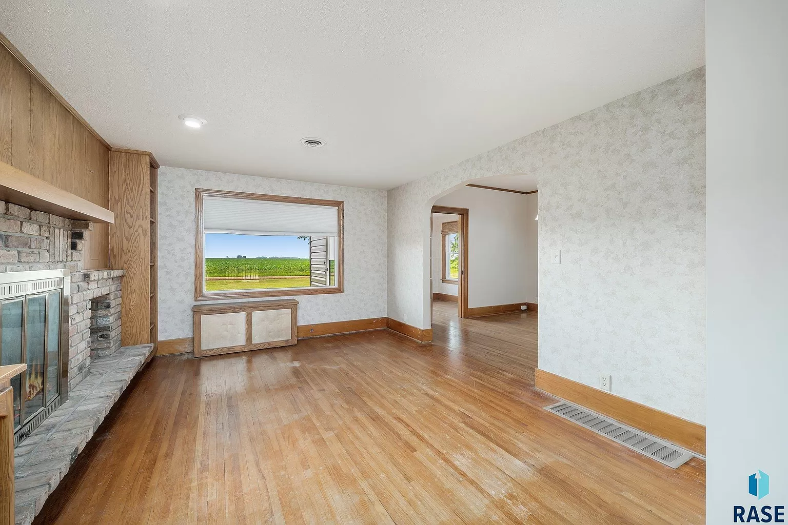 The three-bedroom, two-bath home on the property offers a comfortable living space filled with natural light.