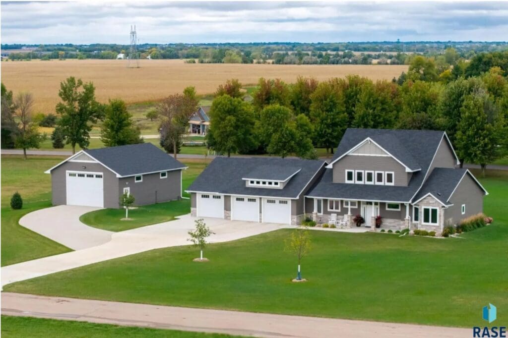 The acreage southeast of Sioux Falls near Lake Alvin includes a story-and-a-half house that was built in 2022 on 2 acres in a rural development. The 3,100-square-foot house has five bedrooms and three bathrooms. The property includes a 30-by-40-foot shop building.