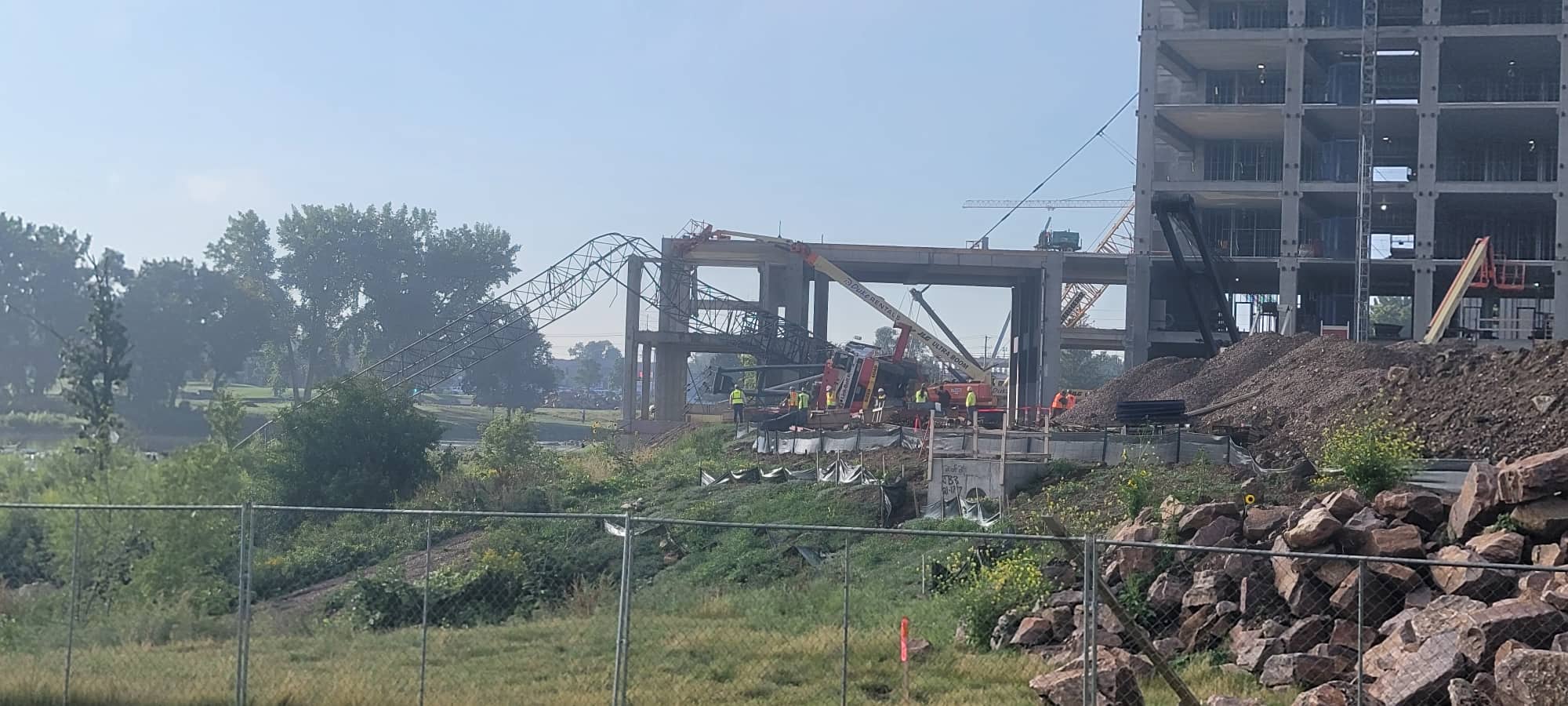 A 200-foot crane tipped over this morning at The Steel District construction site in downtown Sioux Falls.