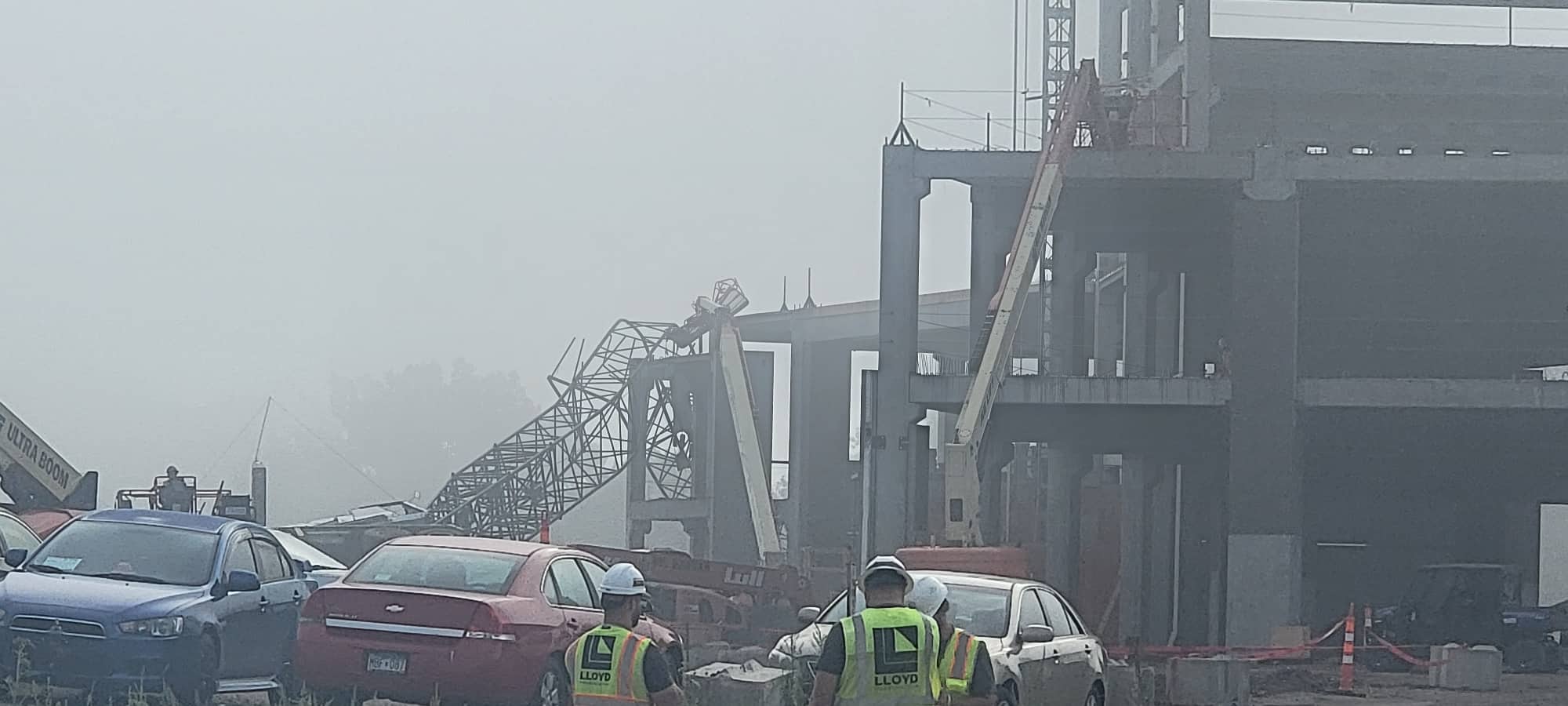 “What’s most important to us is that no one was injured and all will go home safe tonight,” said Jake Quasney, chief operating officer for Lloyd Cos. “We are working diligently with the team to secure the site and move forward safely.”