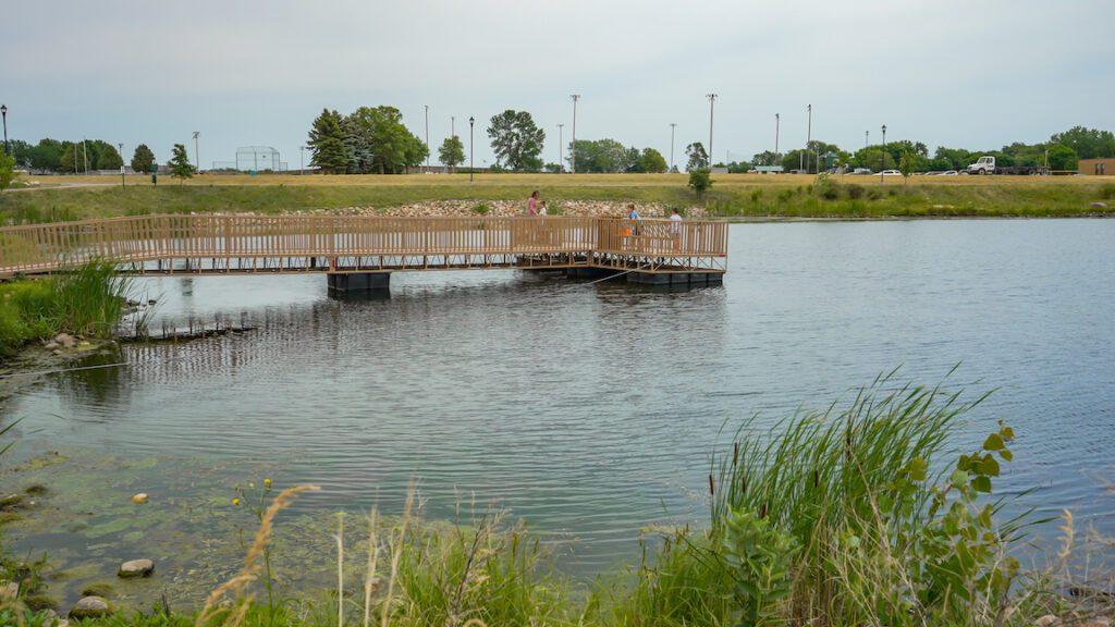 Amenities around the lake include a walking path, a shelter and a newly installed fishing dock that definitely has made it more accessible.
