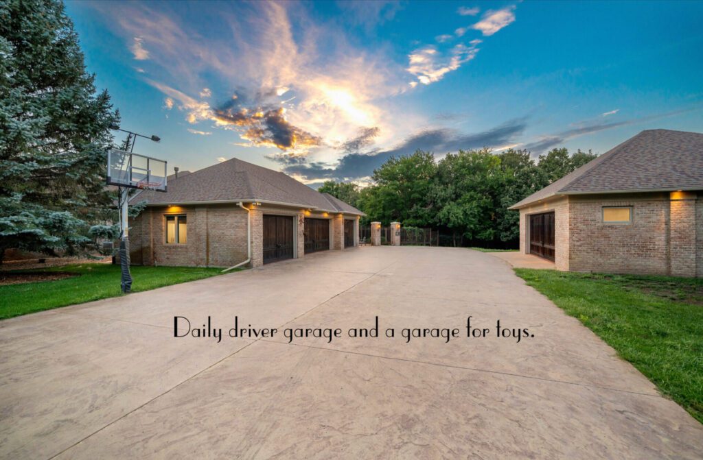 Two garages provide plenty of space for daily-driver cars and all your toys.