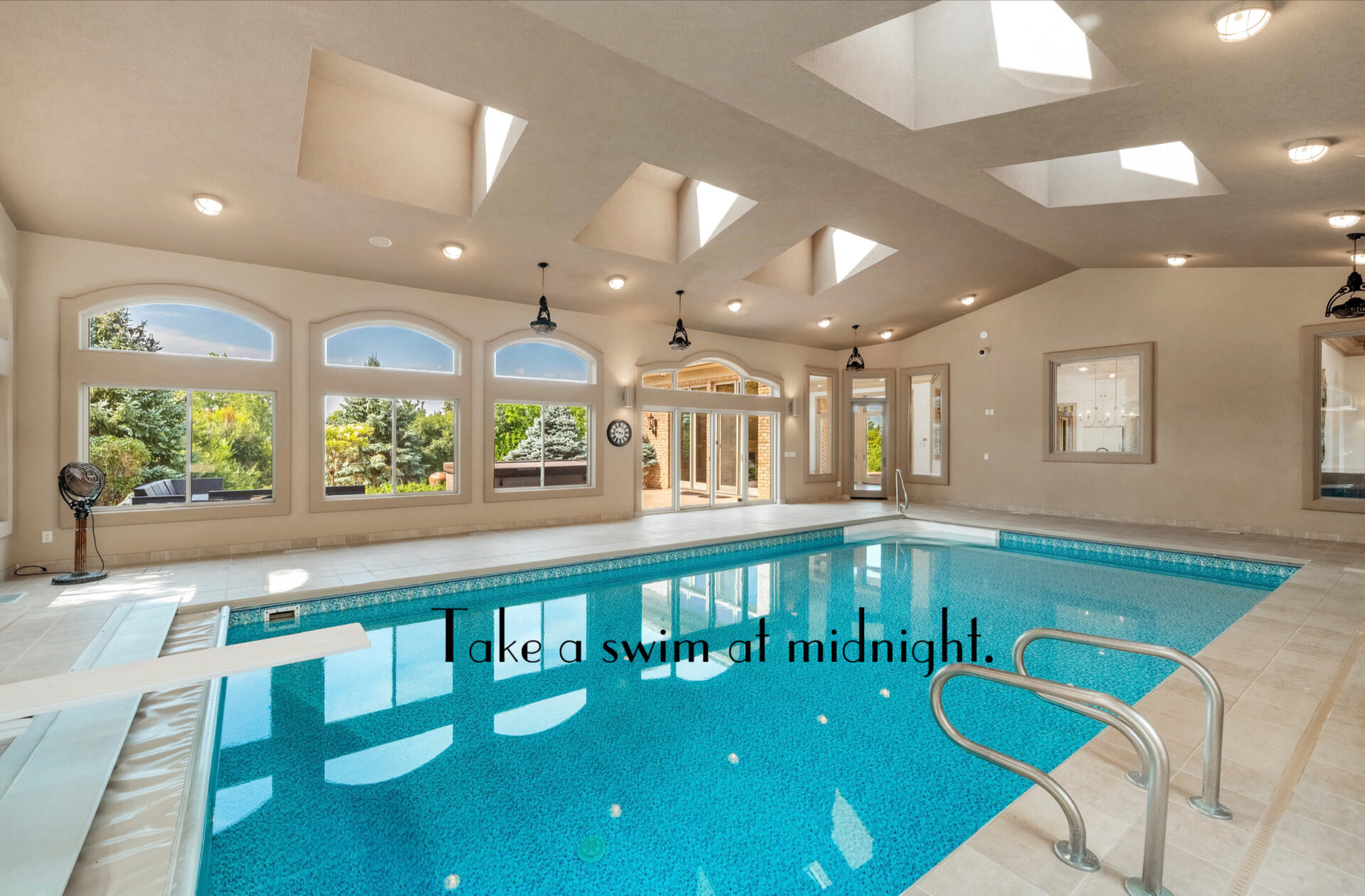 “This favorite ‘little detail’ is a full-sized swimming pool with viewing windows from the kitchen and formal dining room. Imagine swimming at a moment’s notice at any time of the day or night, not to mention even on the coldest winter day!”