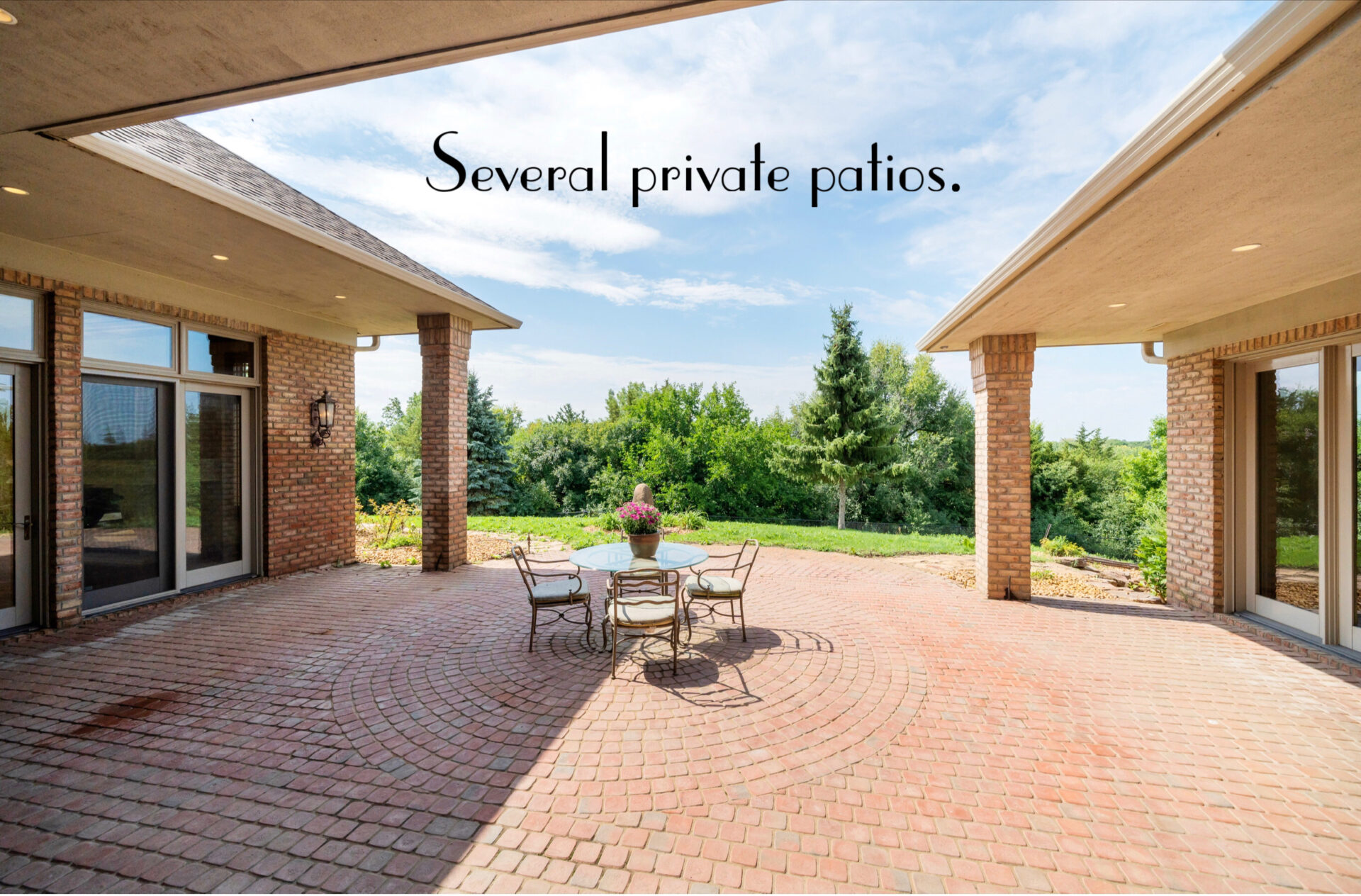 “Enter at your gate, and enjoy the tree-lined, stamped concrete drive. For those seeking a sanctuary literally minutes from Sioux Falls, this four-sided brick estate is sited on 5.96 acres of the most gorgeous land you have ever seen!”