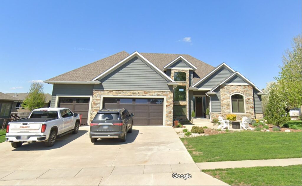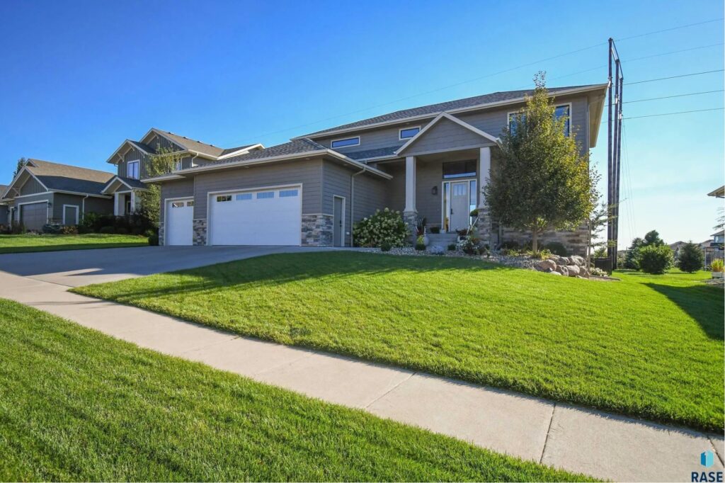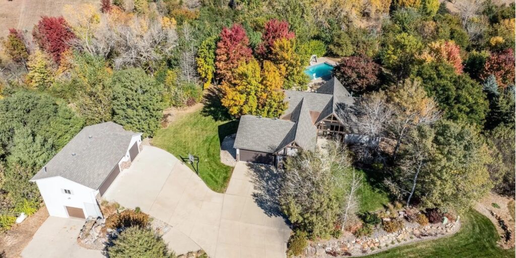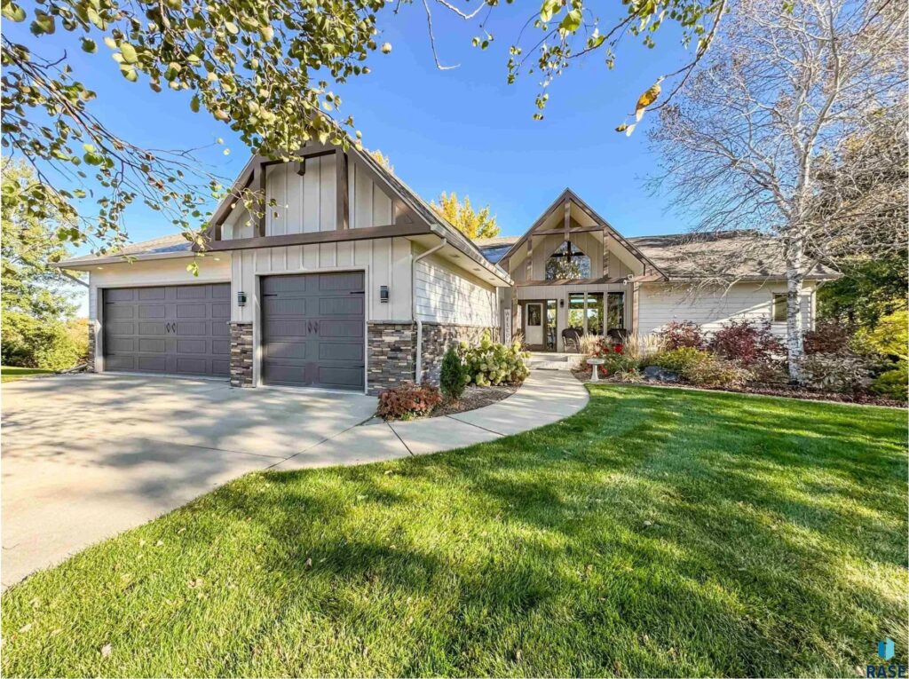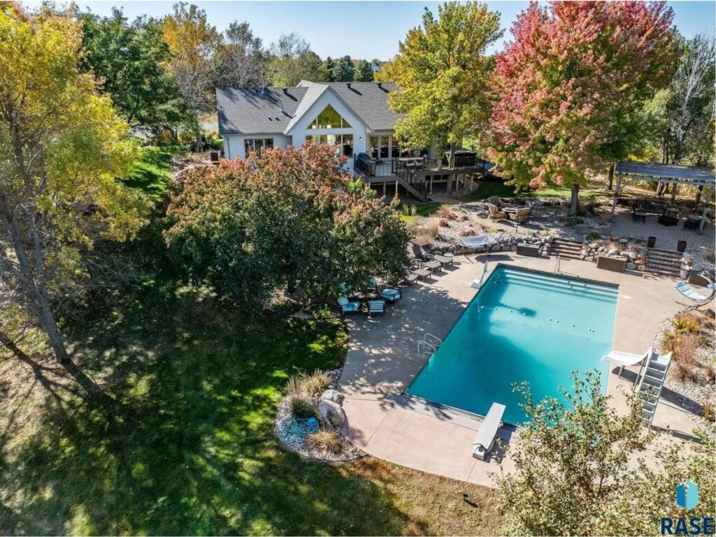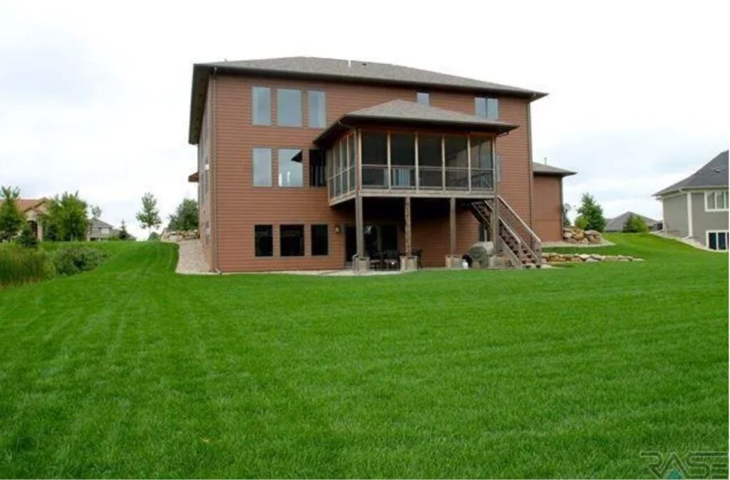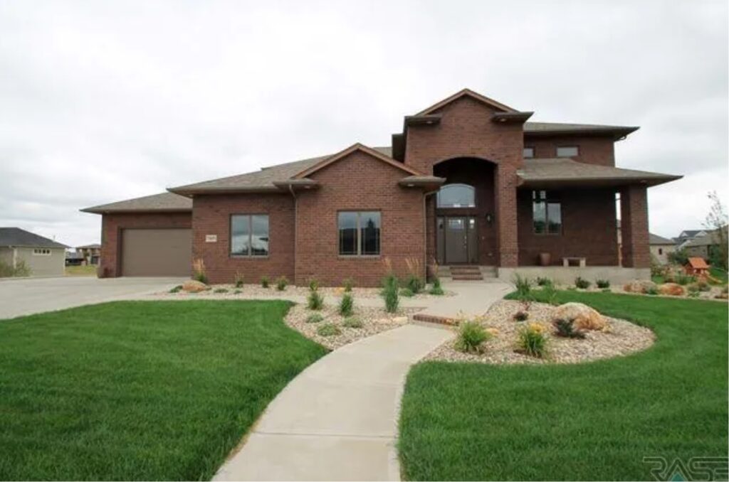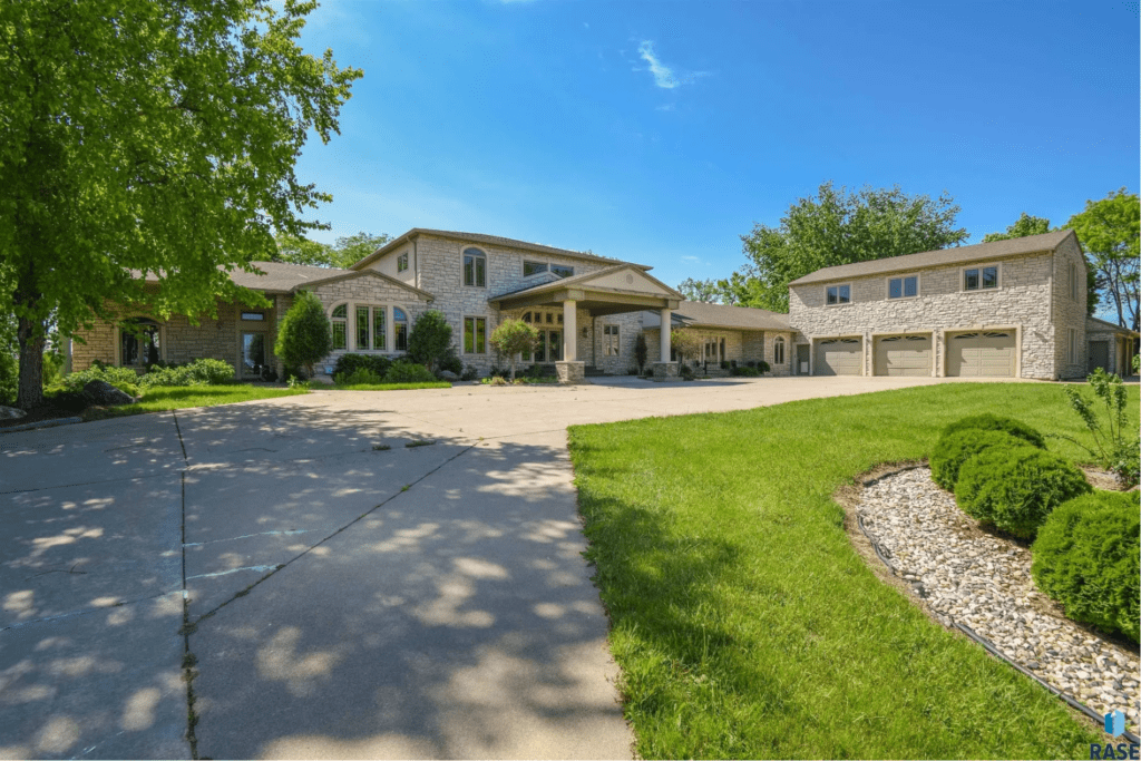 One of the homes was built in 1999 on 5 acres along Highway 115 between Sioux Falls and Harrisburg. The 9,400-square-foot home has five bedrooms and six bathrooms. It features a gated entry with a tree-lined driveway and pond in the front yard. The garage includes a separate living suite on the second floor.