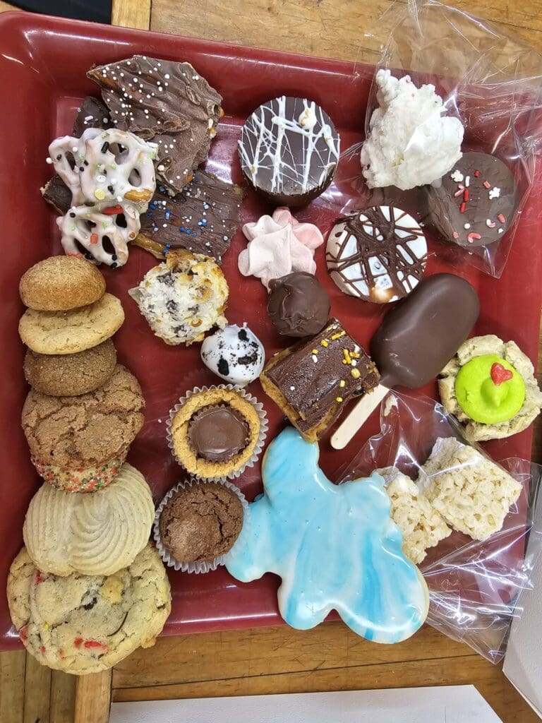 Items: Mini gourmet cakes and holiday cookie boxes