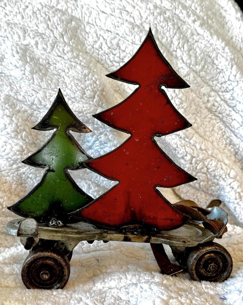 Items: Repurposed inside and outside decor made from old farm tools such as shovels, rakes, hammers, screwdrivers, cream cans, windows, glass and bottle caps