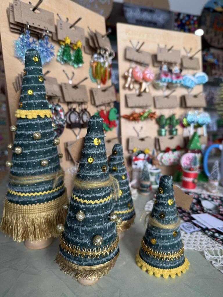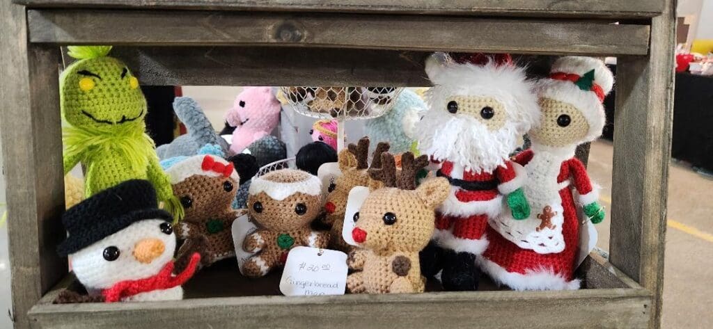 Items: Handmade knitwear such as hats, mittens, scarves and headbands; home accessories such as dishcloths, coffee sleeves, Christmas ornaments and coaster sets