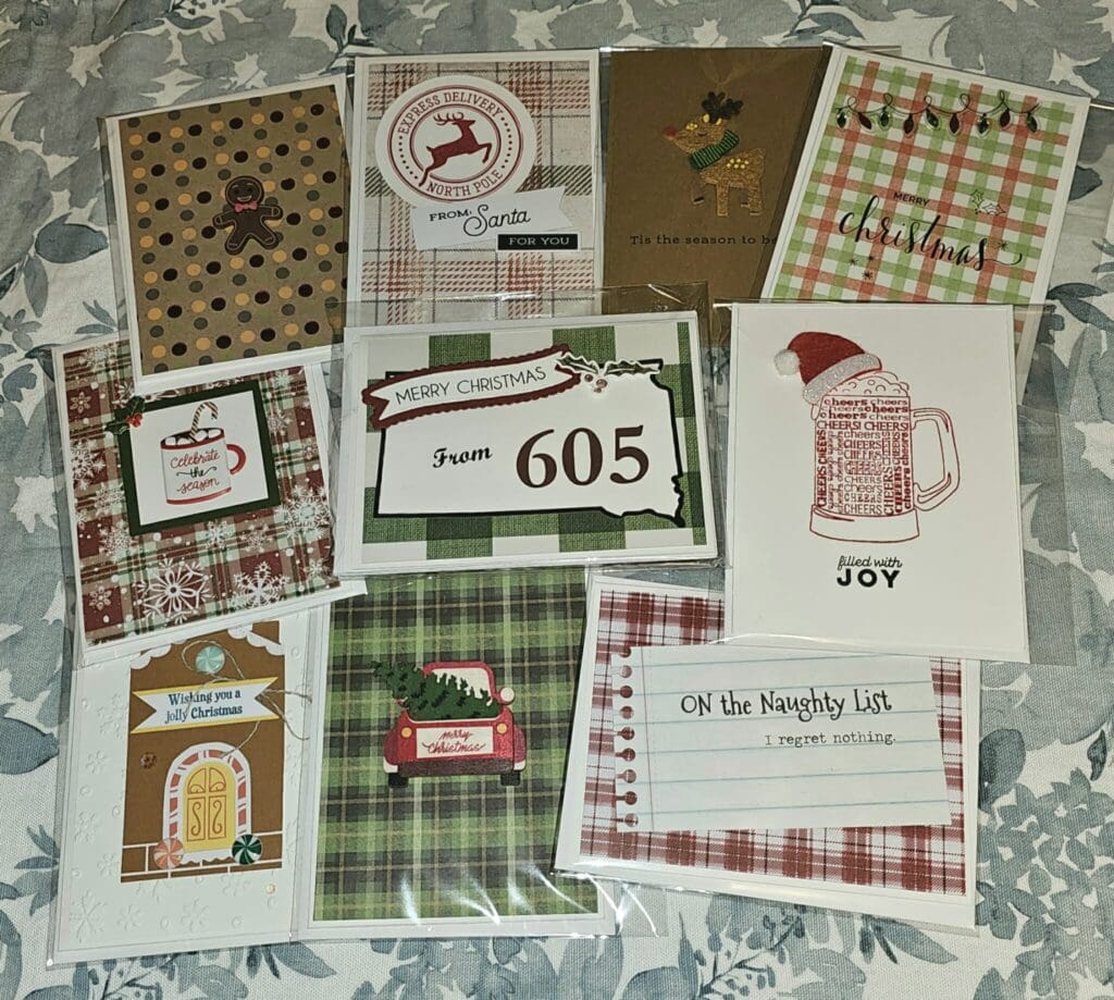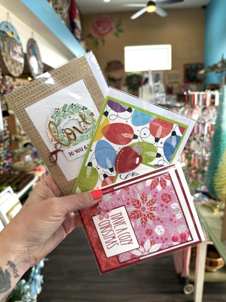 Items: Handcrafted greeting cards that provide a bit of humor, local themes and holiday cheer