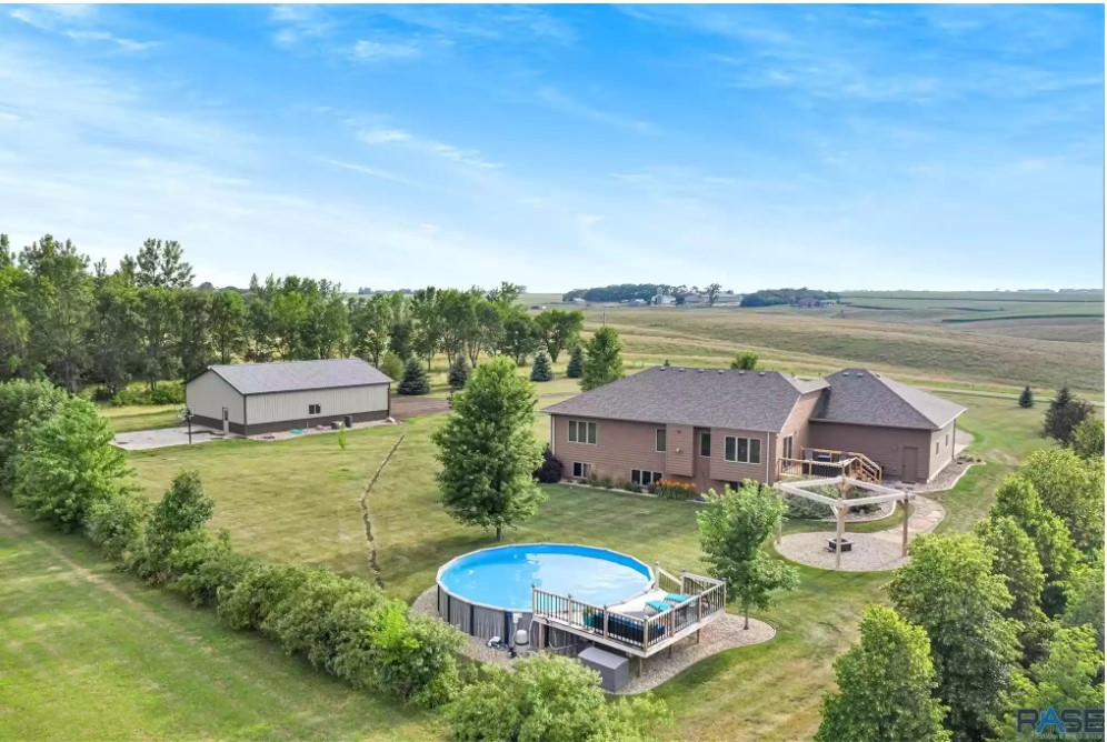 The 6,800-square-foot, two-story home has four bedrooms and three bathrooms. It was built in 2006 and features an indoor pool. The property also includes a 2,400-square-foot pole building. It has a Dell Rapids mailing address, but it’s along Highway 115 a half-mile south of the Baltic Corner.