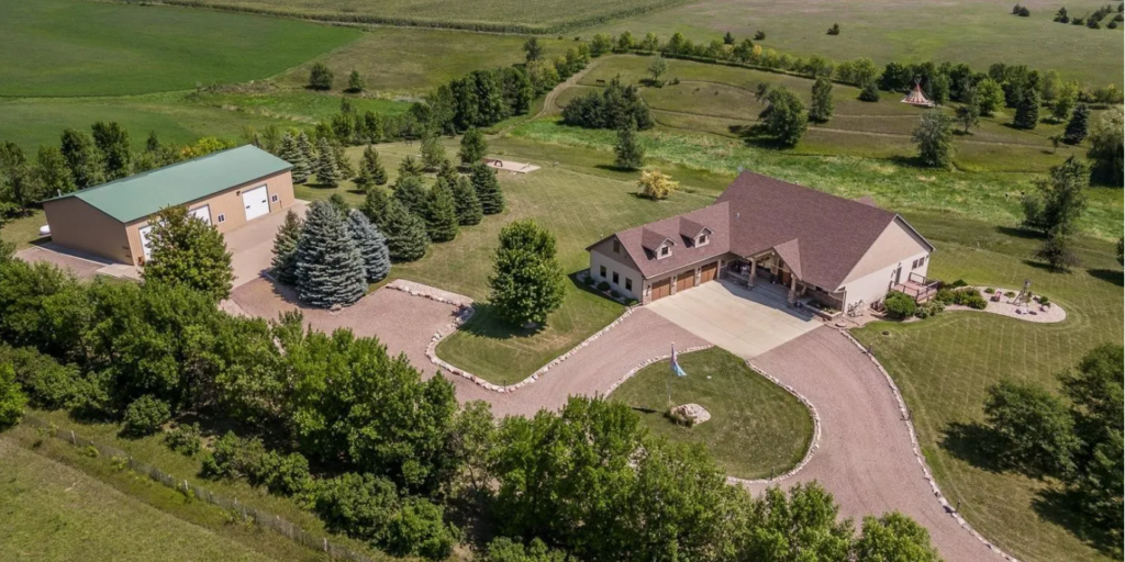 The 4,600-square-foot ranch walkout was built in 2007 on 10 acres between Harrisburg and Canton. It has four bedrooms and three bathrooms. Features include four fireplaces, a walk-in vault/gun room and a concrete wall storm room. The property includes a 72-by-42-foot heated shop and a heated tepee.