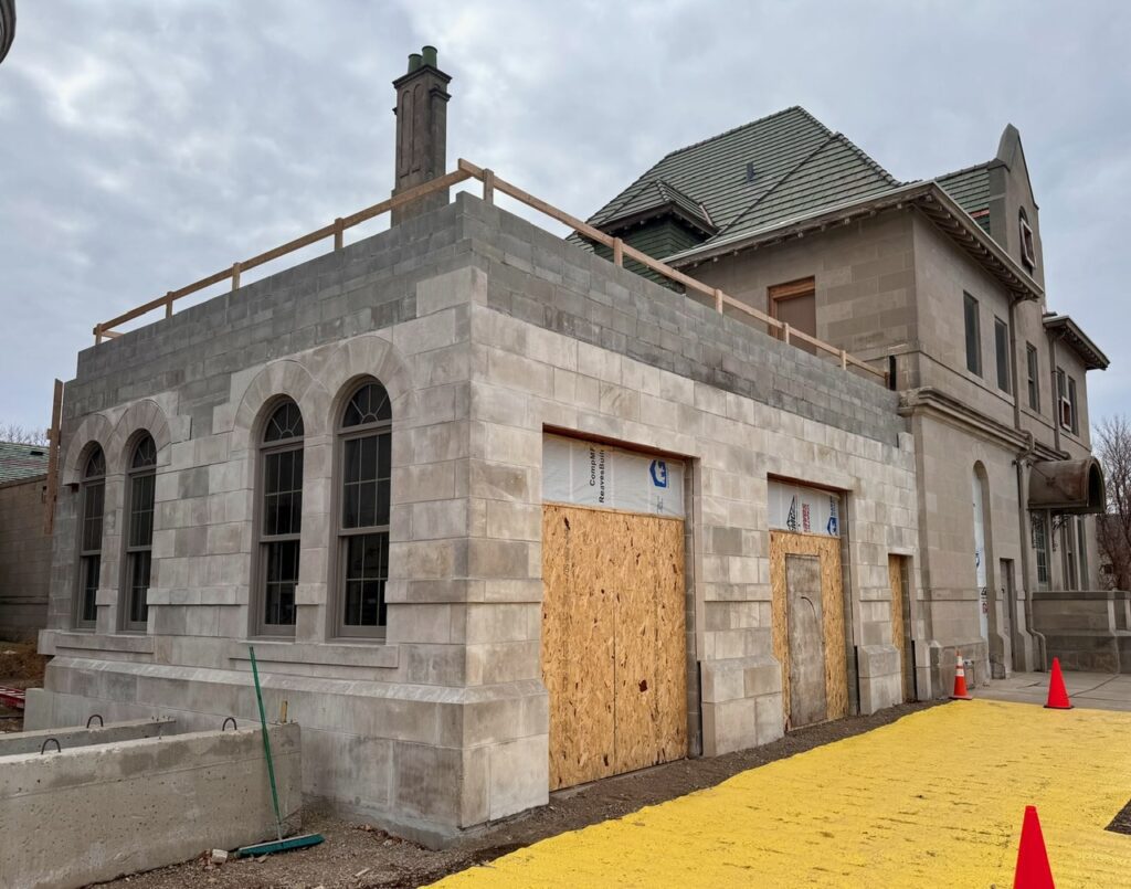 The third floor is being converted back to the three bedrooms it had originally, which will be used for visiting priests, and a new roof and garage are being added.