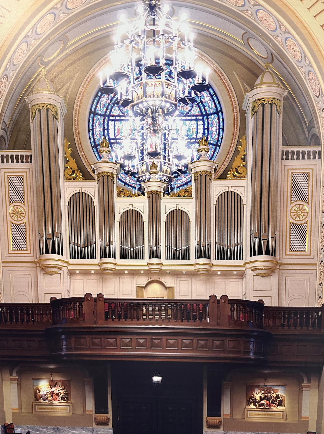 A concert organ to complement the primary, or gallery, organ, is already done. A rendering shows how the new one is envisioned to look, completing the Cathedral’s French Renaissance architecture and the lighter aesthetic used in the renovation.
