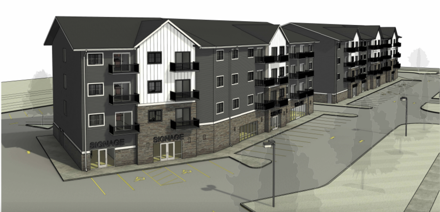 The development ultimately is planned for two multistory, mixed-use buildings plus a small park to support pets. There will be 84 total studio, one- and two-bedroom apartments with a modern farmhouse, Scandinavian-inspired design. The first 30 apartments are scheduled to be available later this summer. On the main floor, Bludorn said the building is a fit for services like a barber or tanning salon.
