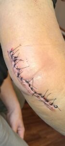 “I was doing it by myself,” he said. “I had a recliner, and there’s a small landing on the steps, and it just got away from me. It got hung up and came loose, and I fell all the way to the bottom in a dive. It was ugly.”