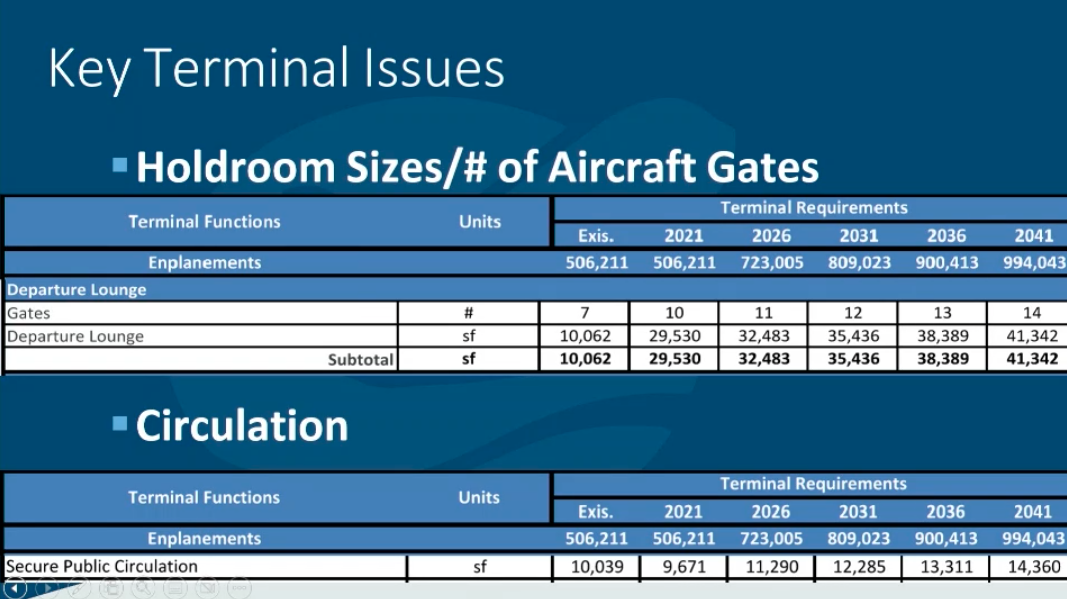Projections show that the city should be at 11 gates and more than 32,000 square feet of space for passengers by 2026, compared with the 10,000 square feet available today.