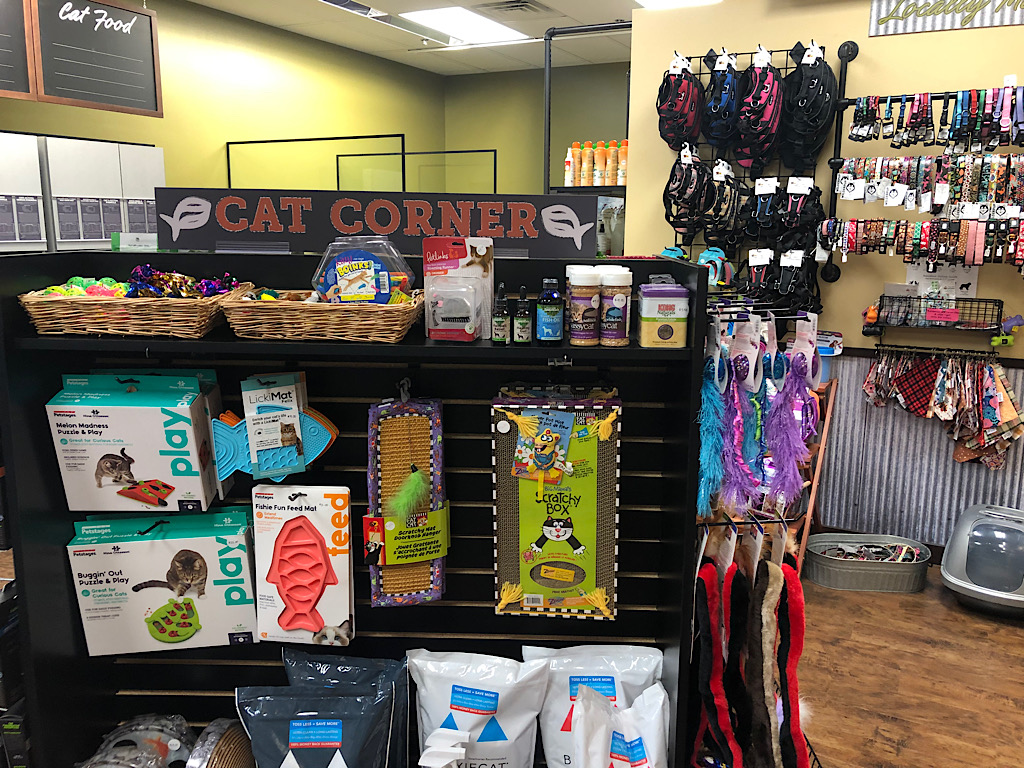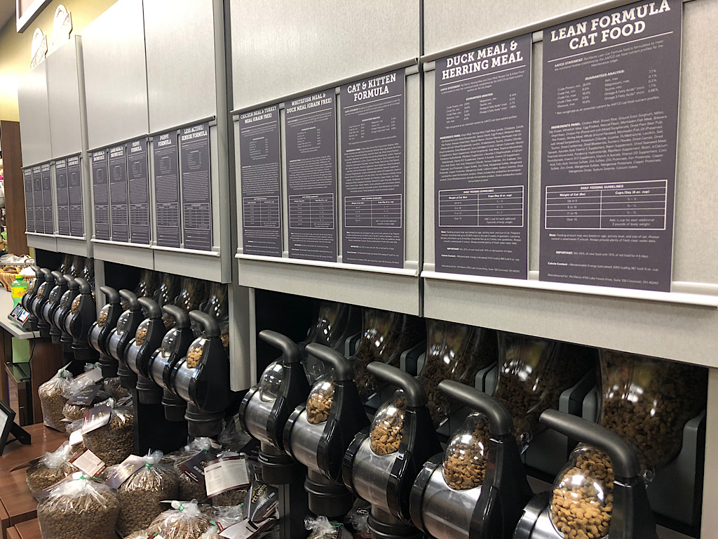 The business is known for its pet food, which does not use corn, soy, wheat, byproducts, preservatives or dyes. At a self-serve station, shoppers can buy as much dry food as they want.