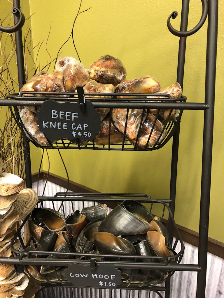 The shop also features dried raw products such as chicken feet, cows’ ears and sweet potato wrapped in chicken.