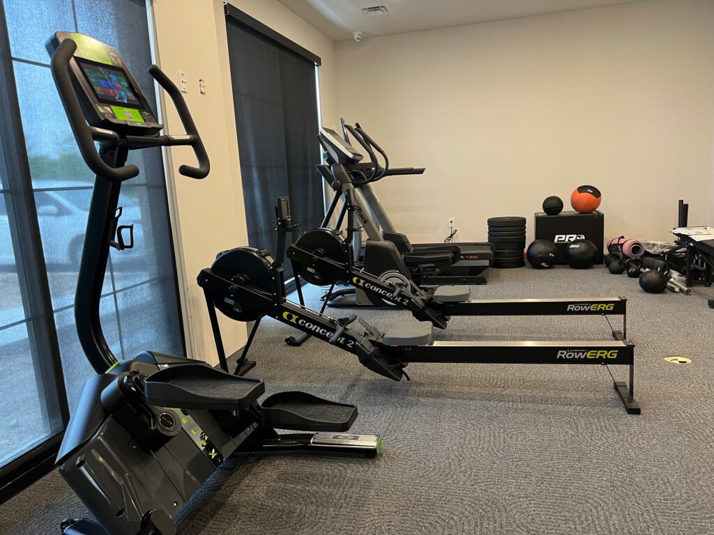 “The fitness center is a full fitness center with pretty much every piece of equipment that will be a membership with 24-(hour) access,” Haiar said. “The fitness center is going to have a locker room with a shower, so you can get ready and go to work … full towels and hair dryers, so you can squeeze it into your busy schedule.”