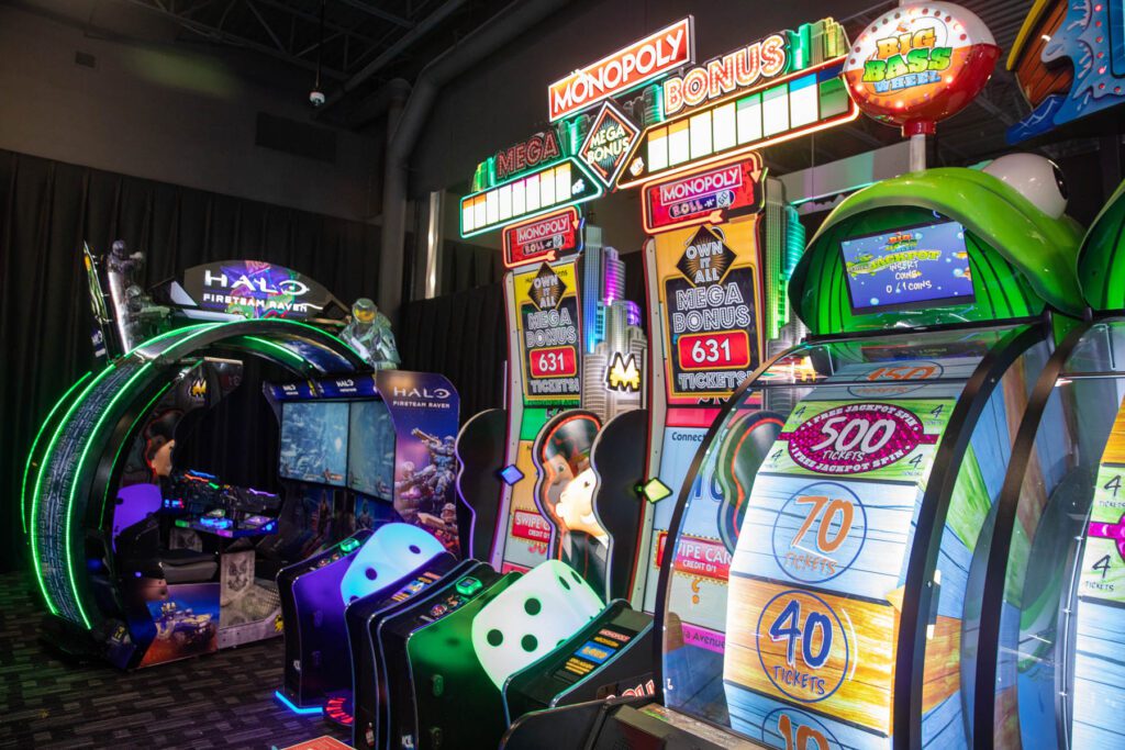 “There are quite a few games I’ve never seen,” Hilliard said, pointing to a giant digital Monopoly-themed game, a Willy Wonka-themed coin-pusher game and a Jurassic Park-themed game of skill.