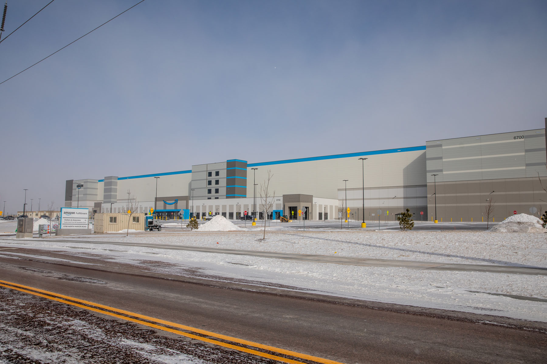 The nearly 3-million-square-foot fulfillment center still has a ways to go before it’s ready to begin preparing products for shipping.