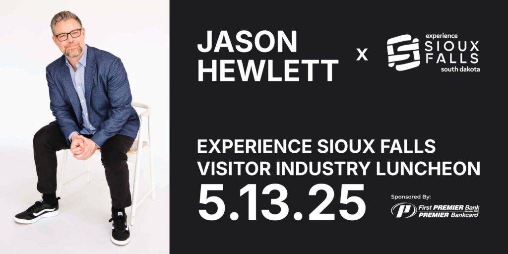 Jason Hewlett will be the featured speaker at the annual Visitor Industry Luncheon set for 11:30 a.m. May 13 at the Sioux Falls Convention Center.