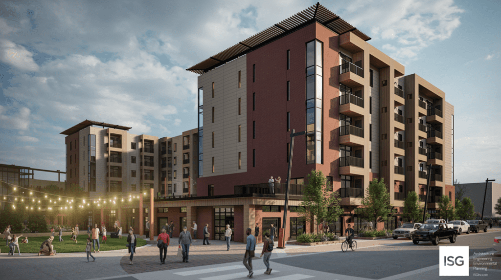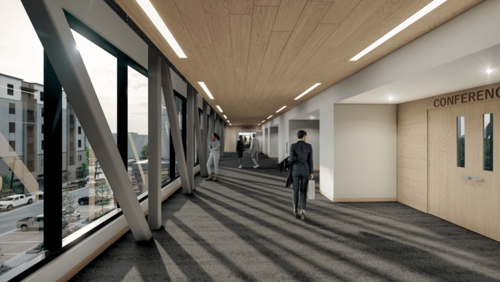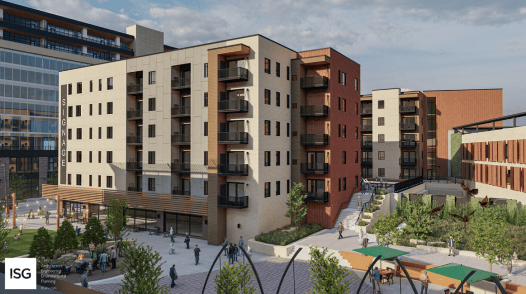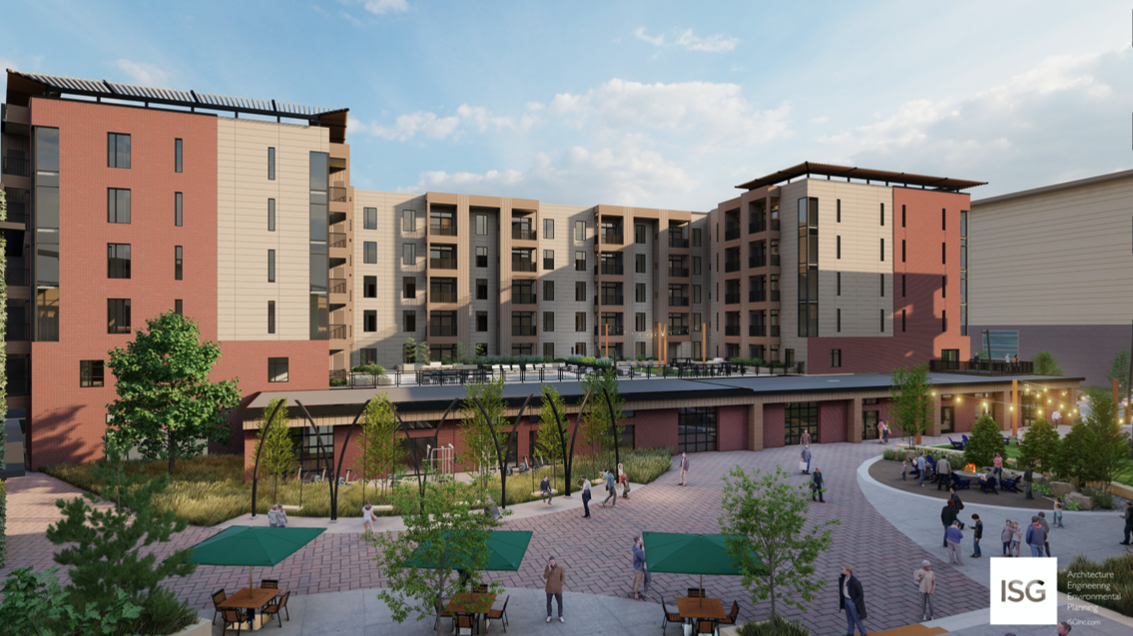 Updated designs also show the community courtyard included with the development. The vision for that includes space for gathering, events, recreation and public art.