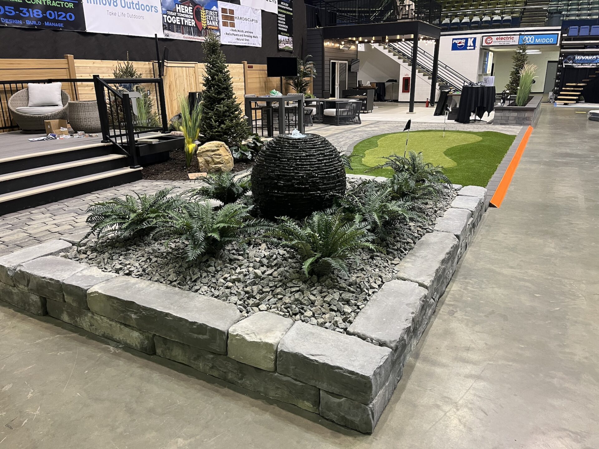At the Home Show, “we showed a Rosetta Hardscapes Kodah wall series, which is a nice free-stacking wall, and we showed it as a garden bed with a nice water feature the landscaper did,” Landberg said.