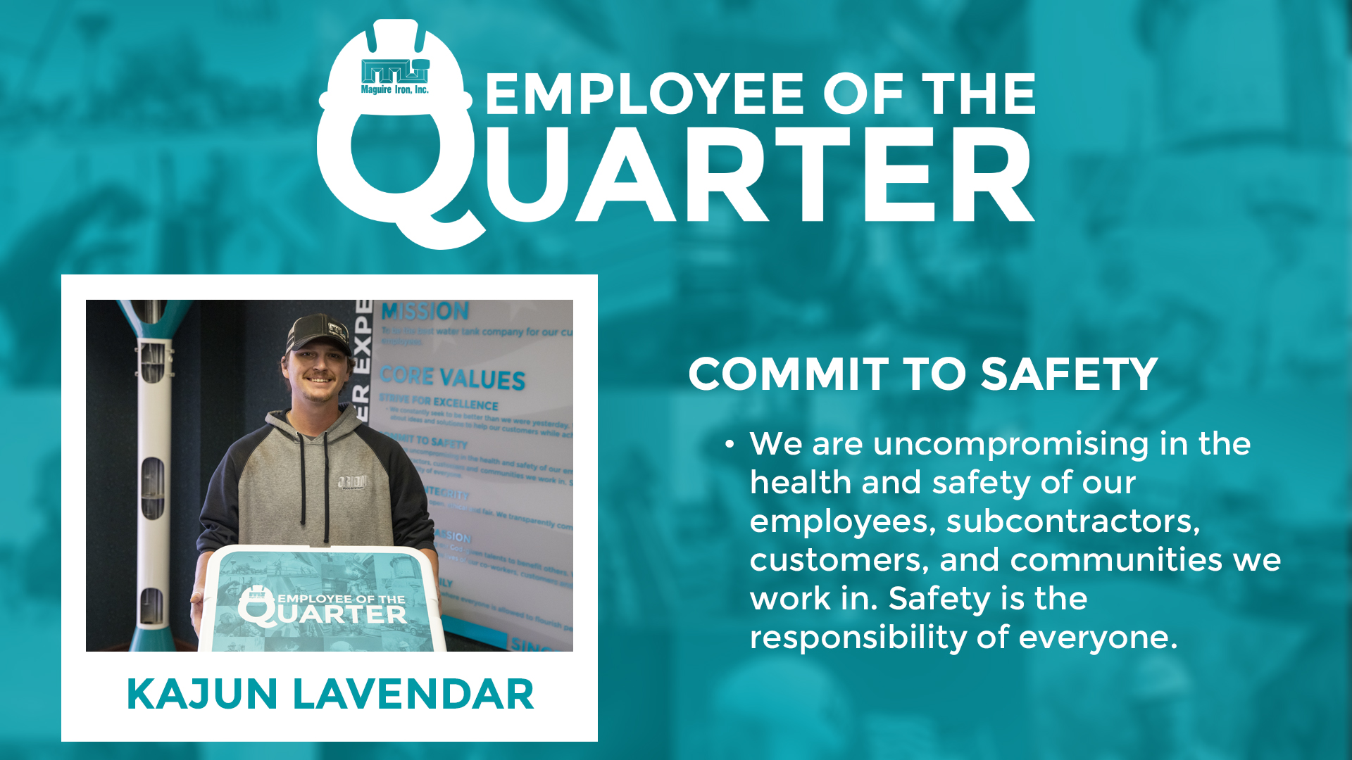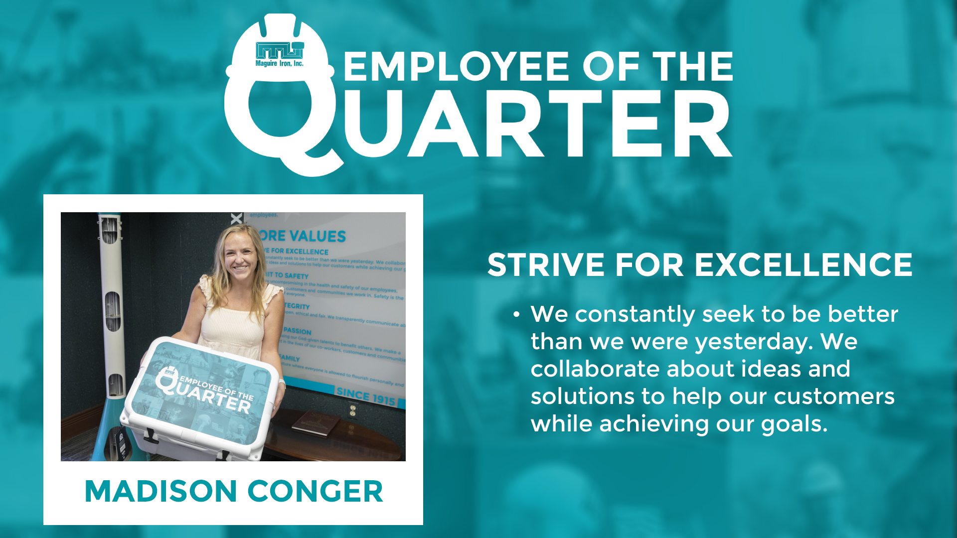“Tyson carries ‘Grow the Family’ in a professional and personal way,” said a Maguire team member in nominating a co-worker. “Since being with Maguire, Tyson has always connected with employees and customers. He takes action when needed and is always willing to lend a hand when needed. He represents Maguire and the core values very well.”