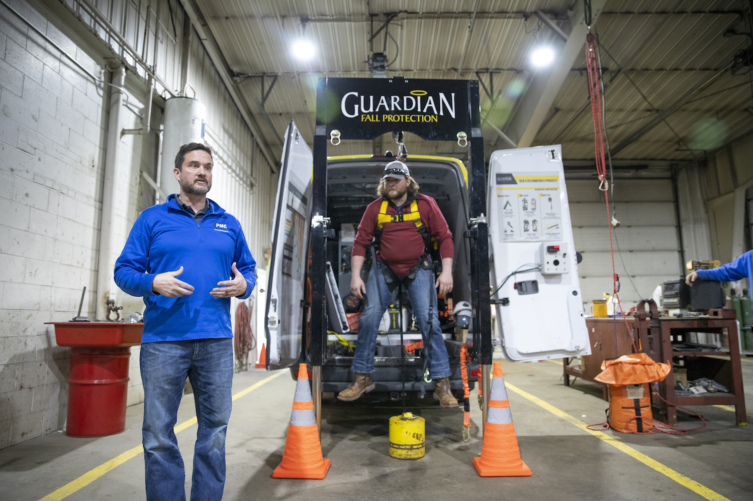 Maguire director of safety Scott Peterson teaching team members about safety techniques