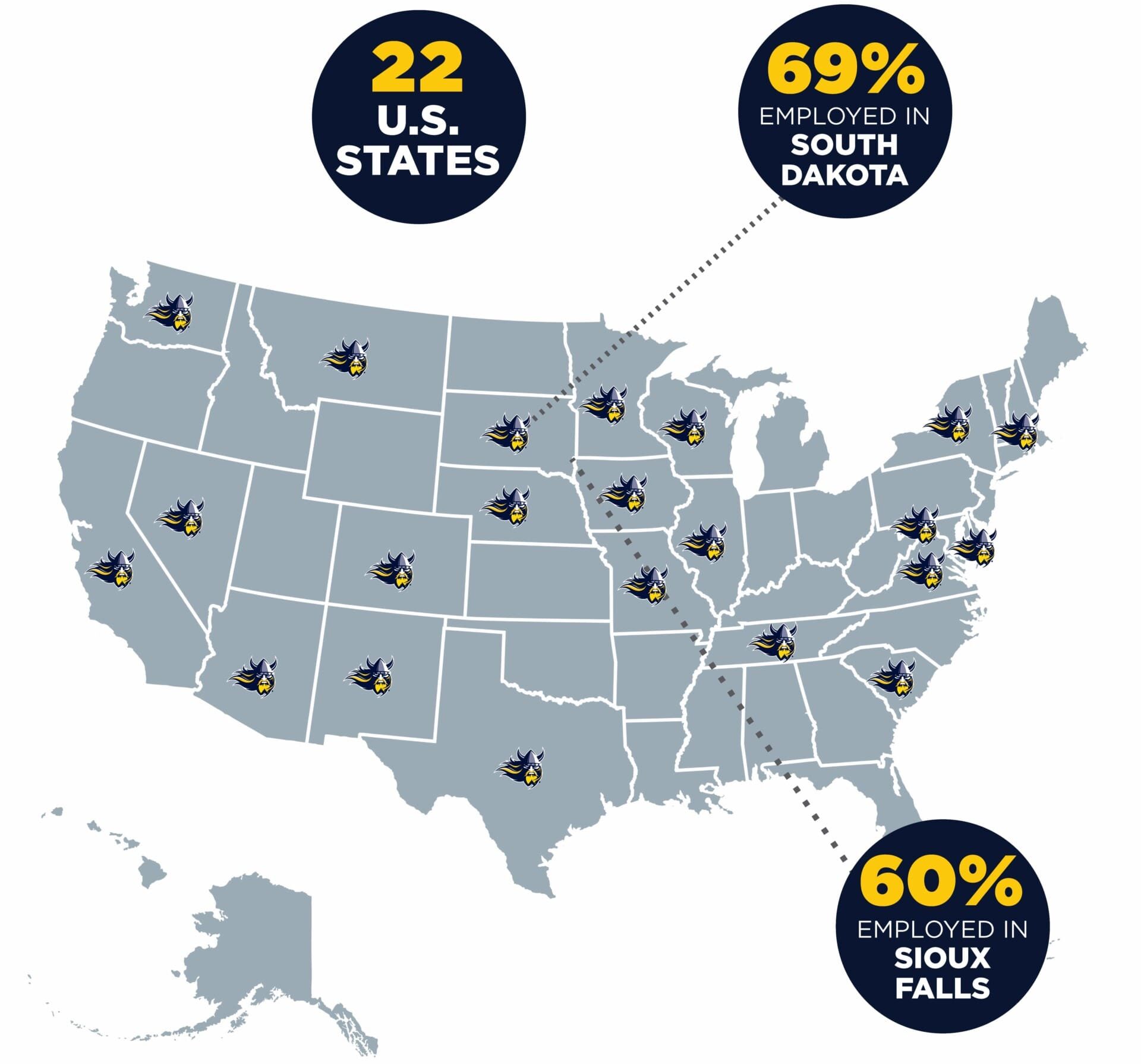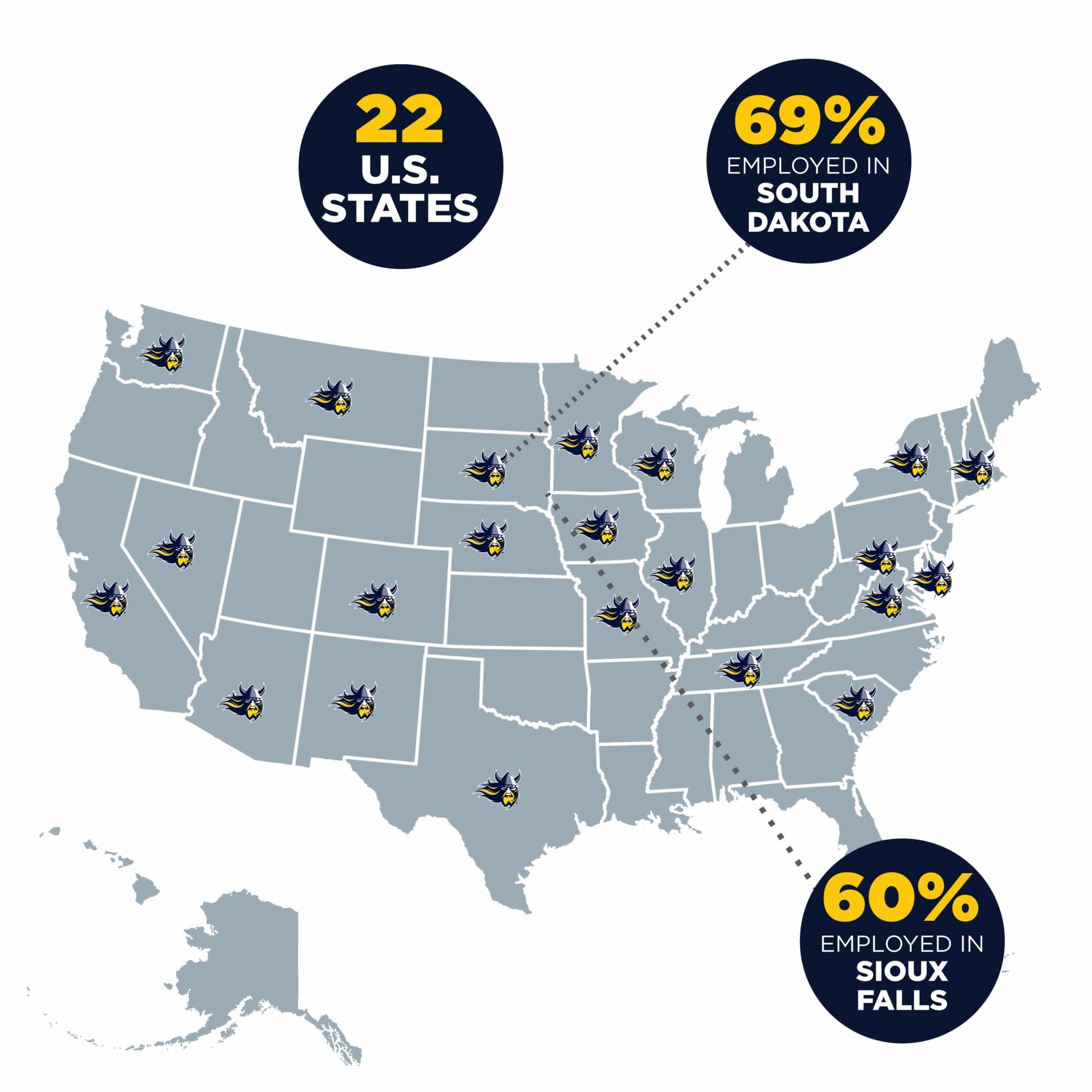 - South Dakota retained 69 percent of AU’s full-time graduates; 60 percent of graduates are working in Sioux Falls.