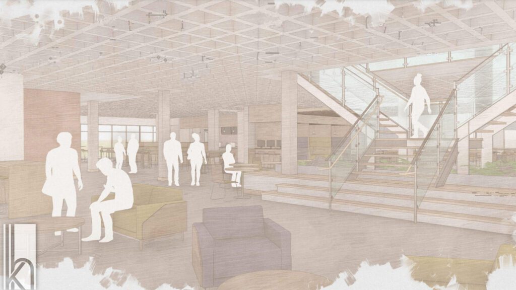 As part of the renovation, the original location of the Morrison Commons stairwell — in the center of the concourse, east of where the Starbucks exists today — will create an open area that also will serve as a “stage” for student programming surrounded by a new lounge area.