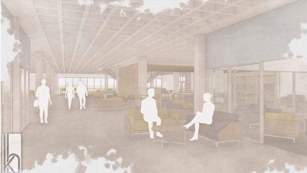 The final layout of the lower level is being determined, but it will include a common seating area and the addition of Chick-fil-A, which has a partnership with Sodexo, Augustana’s food service and facilities management partner. Sodexo will operate it, and students can work there. A refreshed SubConnection sandwich shop also is being considered and would be moved to the southwest end of the building.