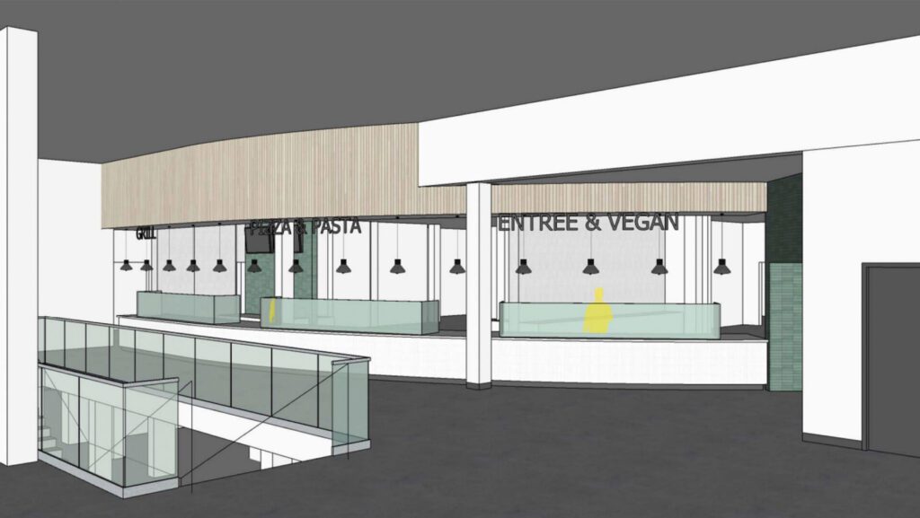 “We’re asking Sodexo to refresh the seating. We’re going to try to eliminate the cafeteria-style feel and open it up. It won’t just be all tables and chairs. It will be more casual. Students can then go to a station and choose to sit upstairs, downstairs, wherever.”