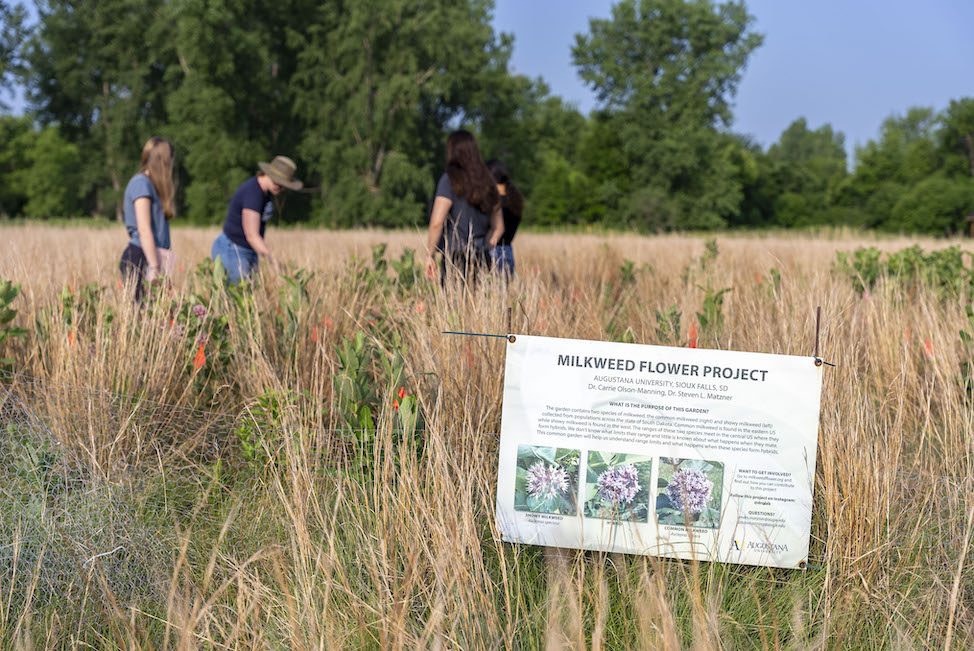 Science is always a team effort, and our undergraduates are an indispensable part of our team. We have planted milkweed gardens at the Outdoor Campuses in Sioux Falls and Rapid City and in the Pierre Grasslands, and we monitor those gardens for survival, reproduction and the kinds of specialized chemicals the two species make. In addition to studying their survival and chemicals, we also study their genetics and ecology. There is so much to learn about this system. The undergraduates are involved at every step and make contributions to all parts of the projects.