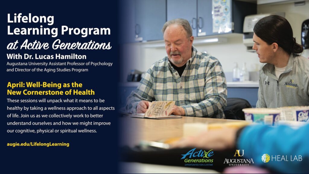 Dr. Lucas Hamilton, Augustana University assistant professor of psychology and director of the aging studies program, likes to say “Aging doesn’t start at 65; it starts the moment you’re born.”