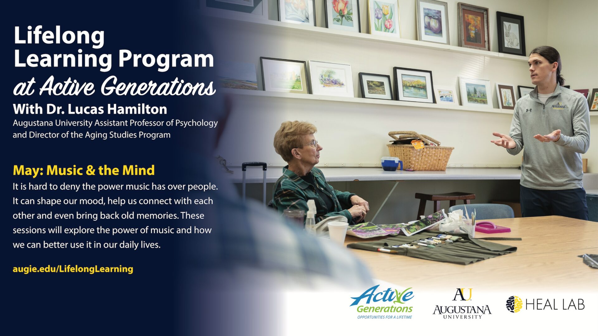 “There’s a thirst for knowledge among our members, but we can’t create these types of materials that Dr. Hamilton can,” said Active Generations president and CEO Betsy Schuster, a 2007 Augustana graduate. “There is a misperception that Active Generations is only for a defined age, but we’re all aging, so it’s really about how we can create this community of learning regardless of age.”