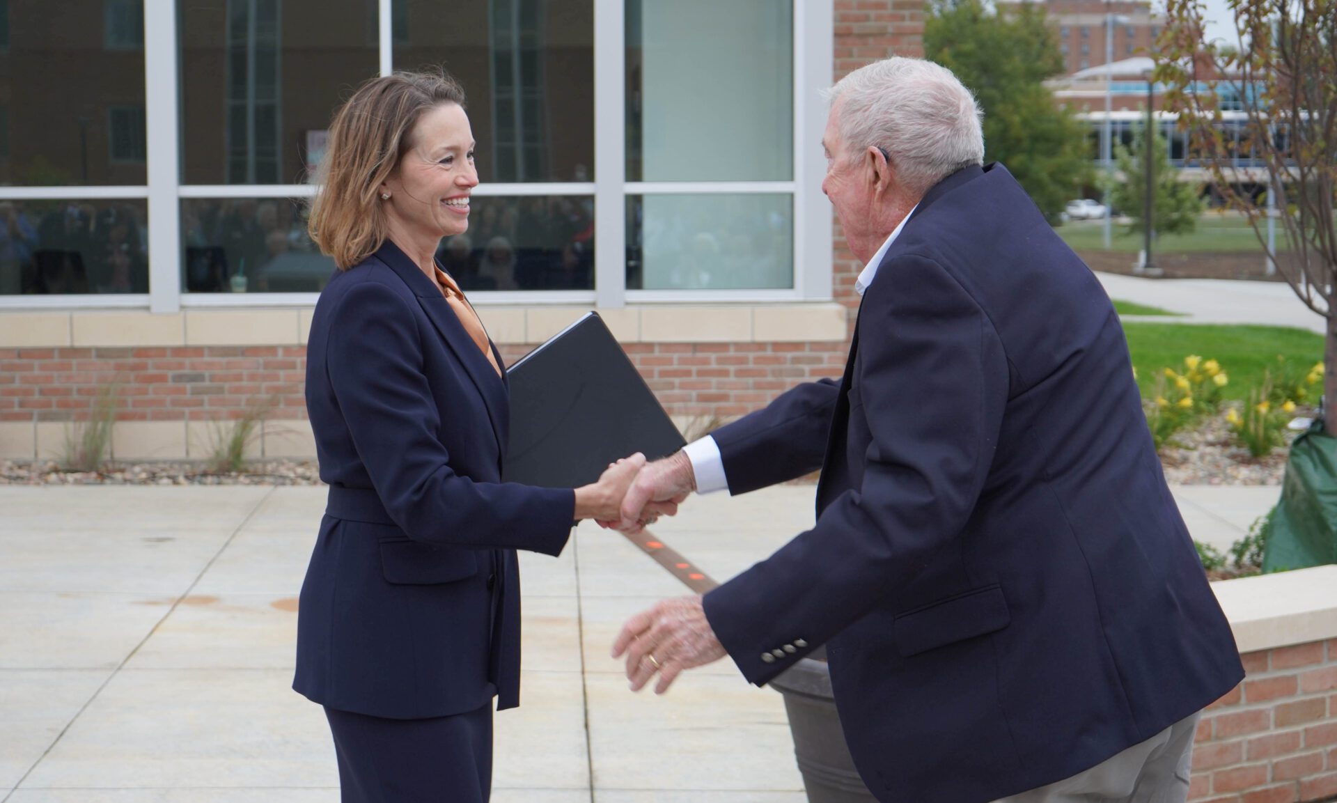 Hosted by the Greater Sioux Falls Chamber of Commerce, the Augustana community gathered together at a ceremony Sept. 23 to celebrate the ribbon-cutting and dedication of Ralph H. Wagoner Hall — named after Augustana’s 21st president.