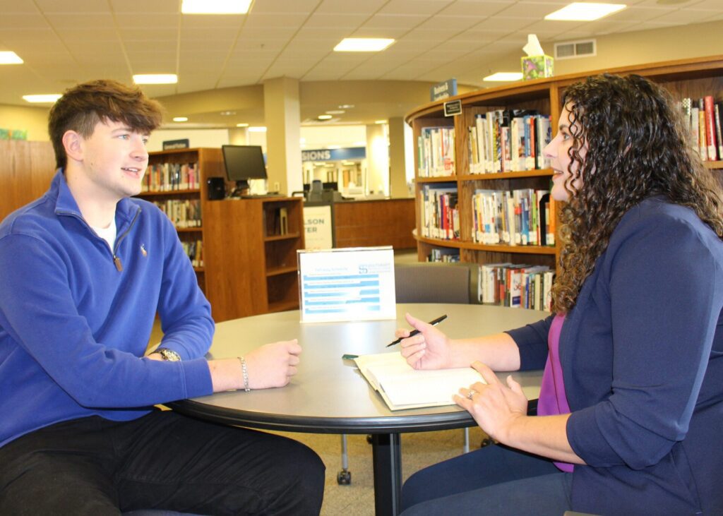 Maksym Pylypchuk meets with Sarah Siemonsma, Avera Academy administrator.