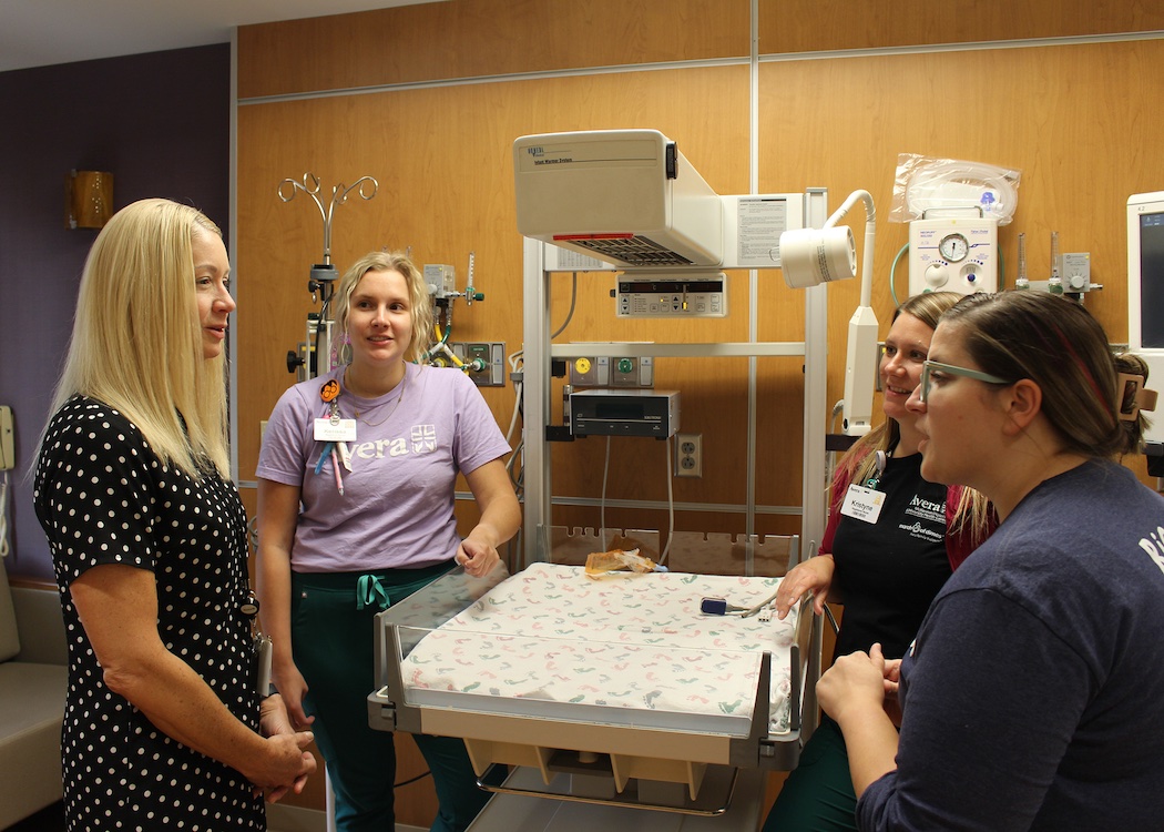 Tamera Larsen-Engelkes, chief nursing officer at Avera McKennan, talks with Kerissa Gauer, Kristyne Zuehlke and Amber Patzlaff, all registered nurses in the neonatal intensive care unit.