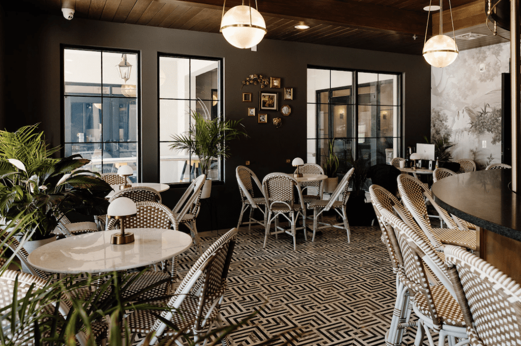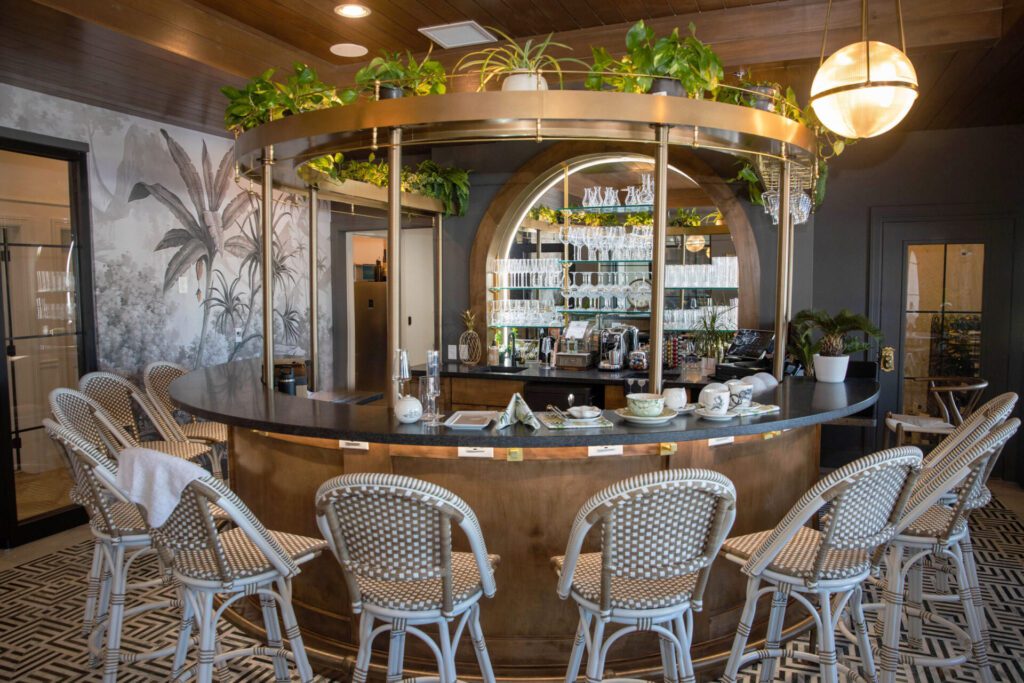 In nicer weather, “we have a huge patio that we’re going to surround with Aphrodites, so you’re barricaded, and it creates a terrace effect,” she said. “We’ll have a fountain in the spring, so we’ll focus heavily on that patio because it’s east-facing and covered, so you’ll feel like you’re in a French terrace with tons of greenery and plants surrounding it … kind of a grass wall.”