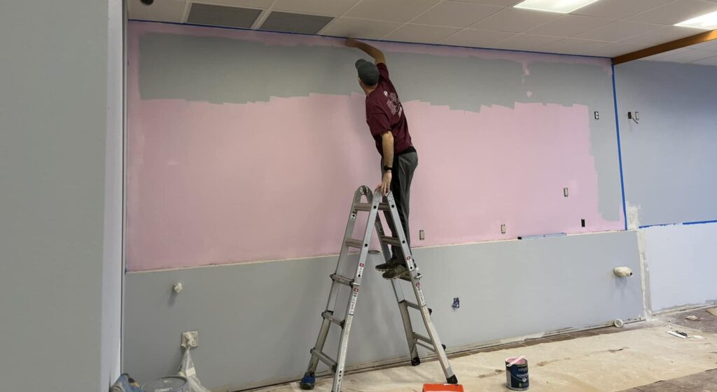She’s remodeling the space now – including a pink wall that’s just for her, something she does not have at home “with all these boys running around here.”