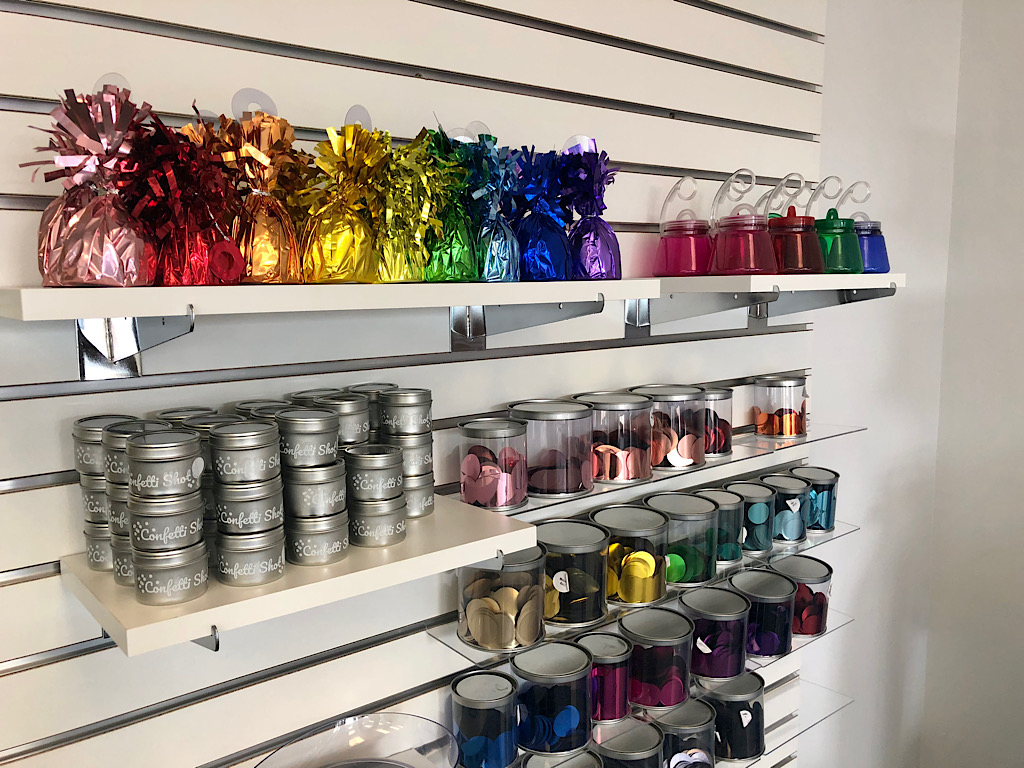 The shop hand-cuts its tassels for balloon strings, offers satin ribbon as an option for curling ribbon and mixes its own confetti that it sells by the ounce.