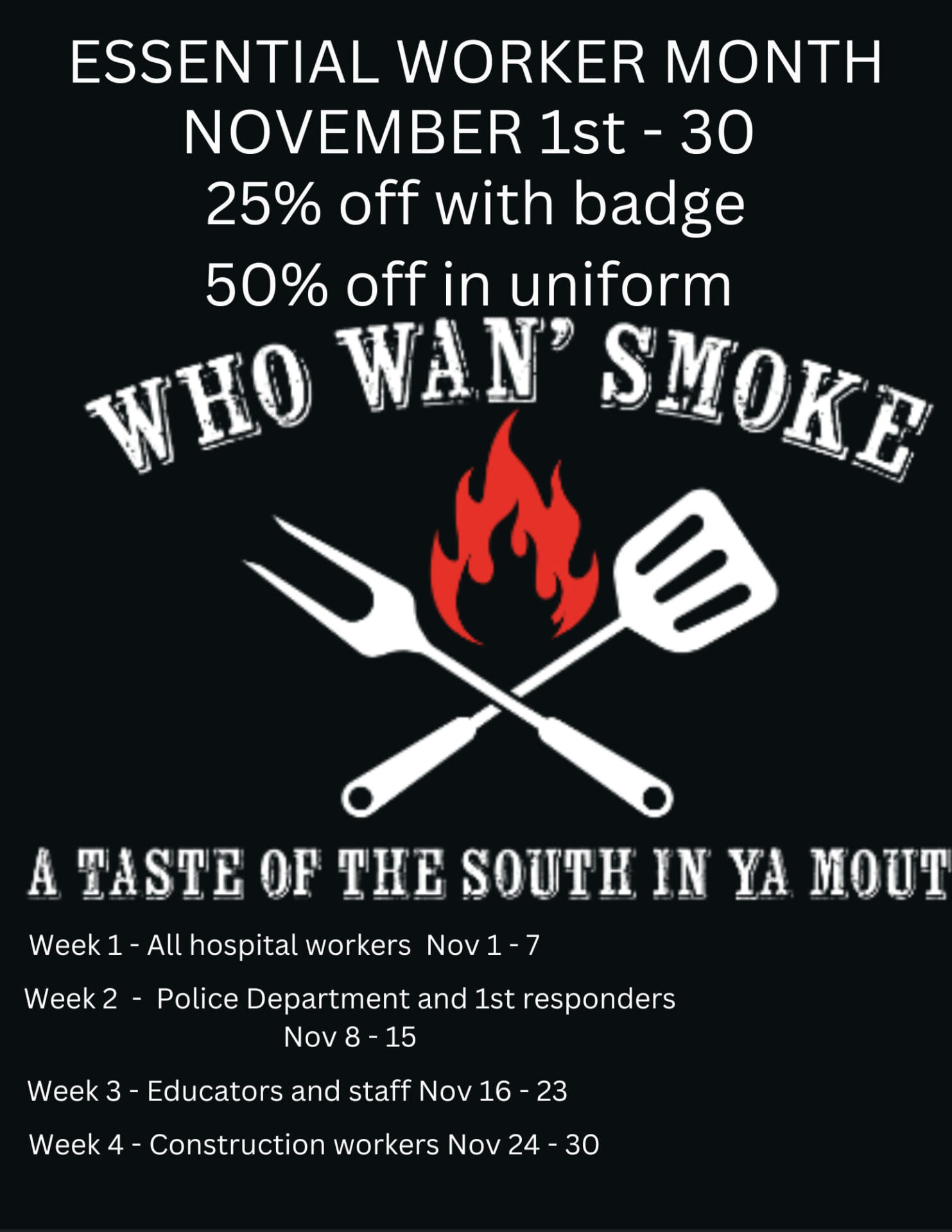 He started Who Wan’ Smoke in August in a parking lot at 49th Street and Minnesota Avenue but had to find a new home in September. The change also led to quitting his full-time job and putting all his effort into the barbecue business.