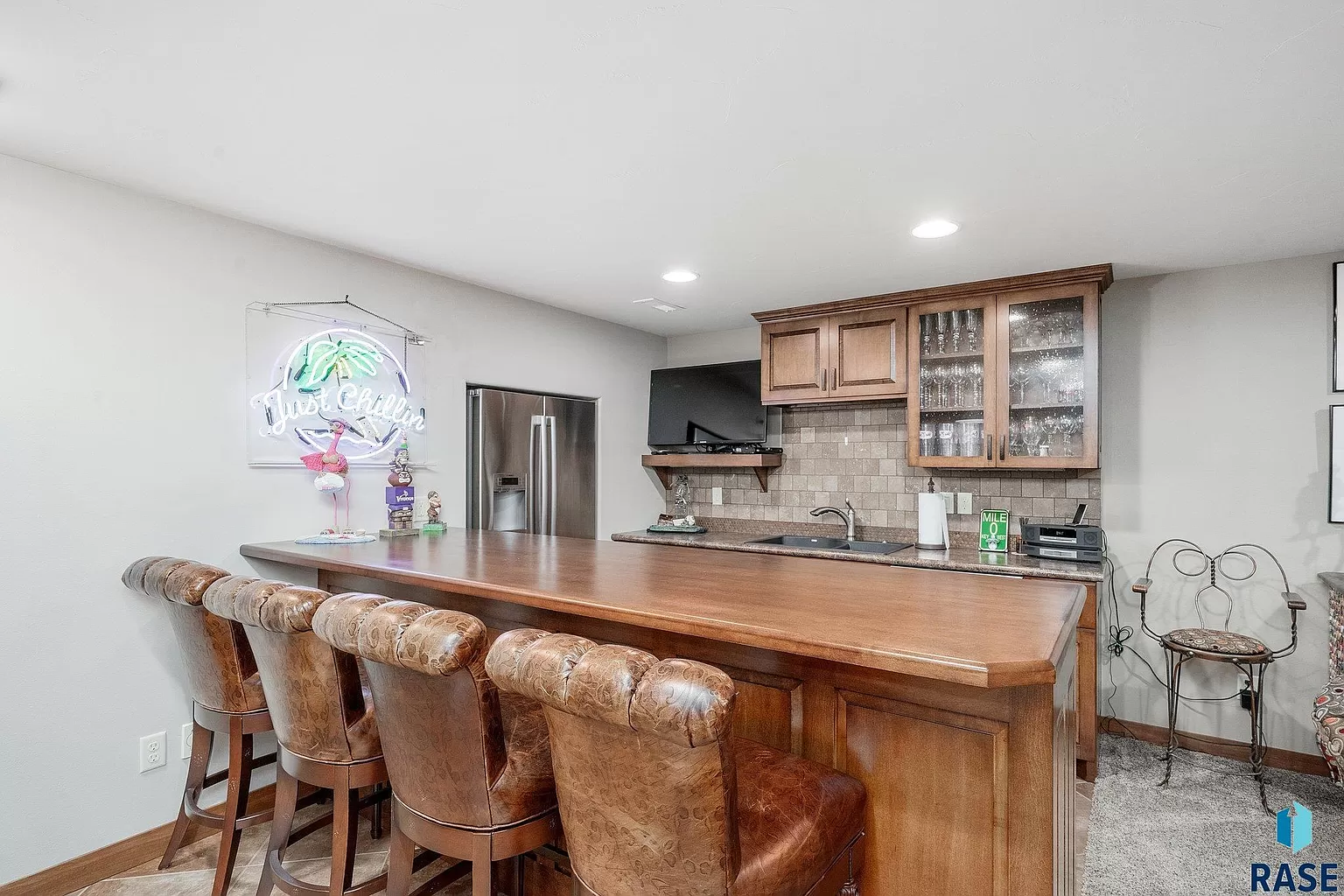 The home’s lower level is perfect for entertaining, with a full-size fridge, dishwasher, sink and microwave in the bar area.