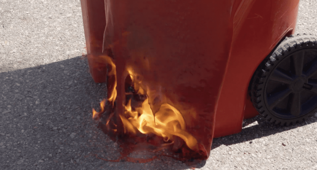 The department created this video to show what happens when fireworks recently set off are placed in a garbage can with ordinary combustibles: