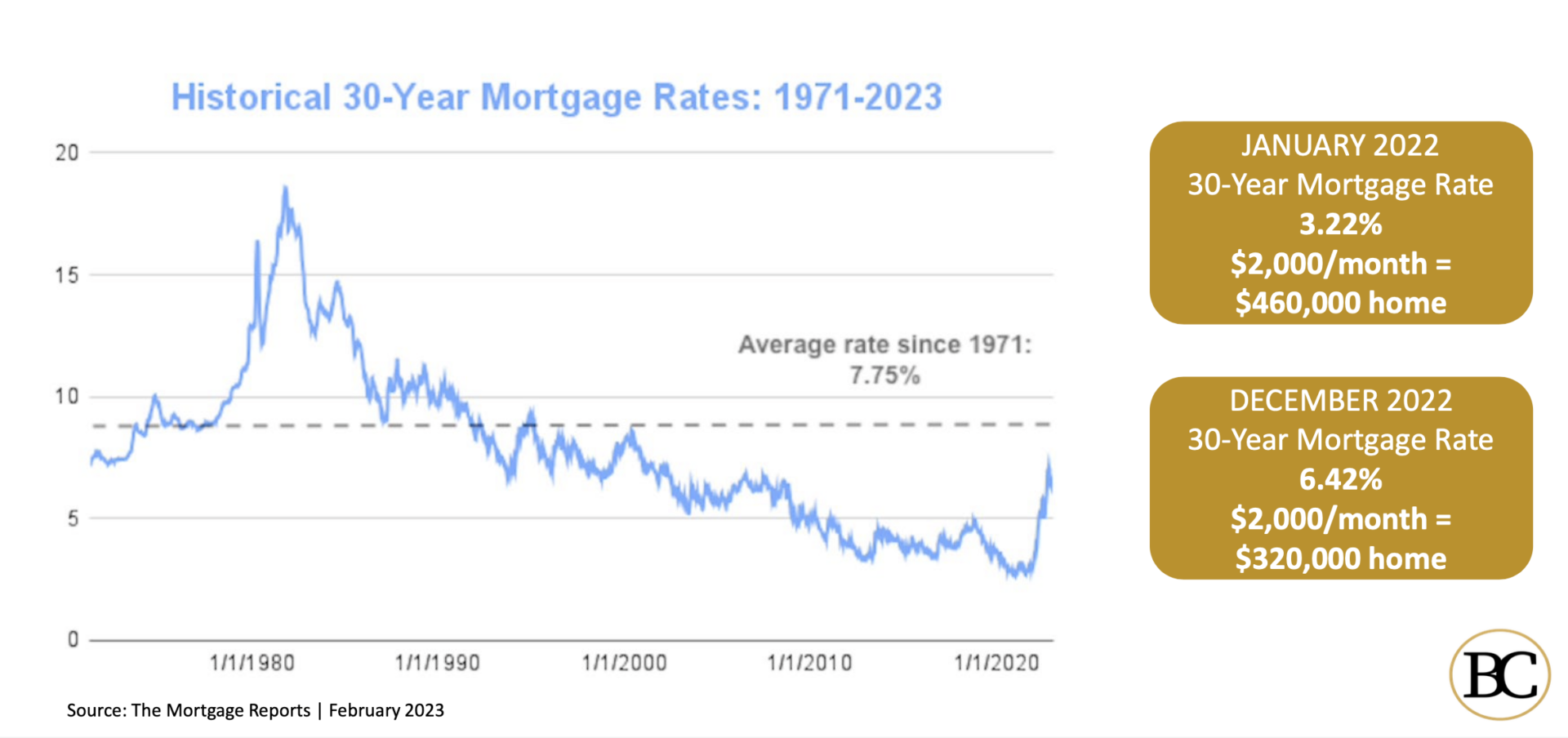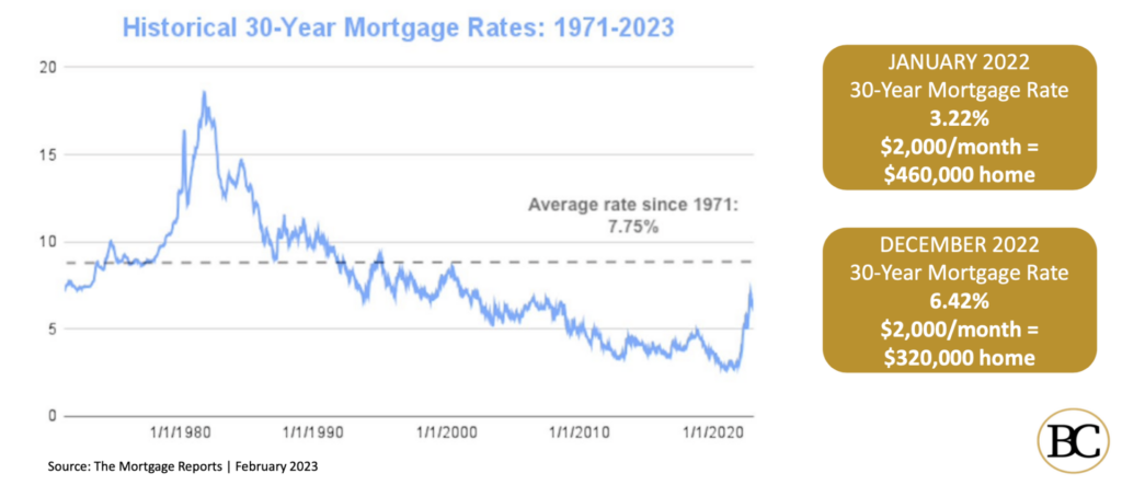 In January 2022, a $2,000-per-month mortgage payment supported a typical mortgage for a $460,000 house. By the end of the year, that had dropped to a $320,000 house.