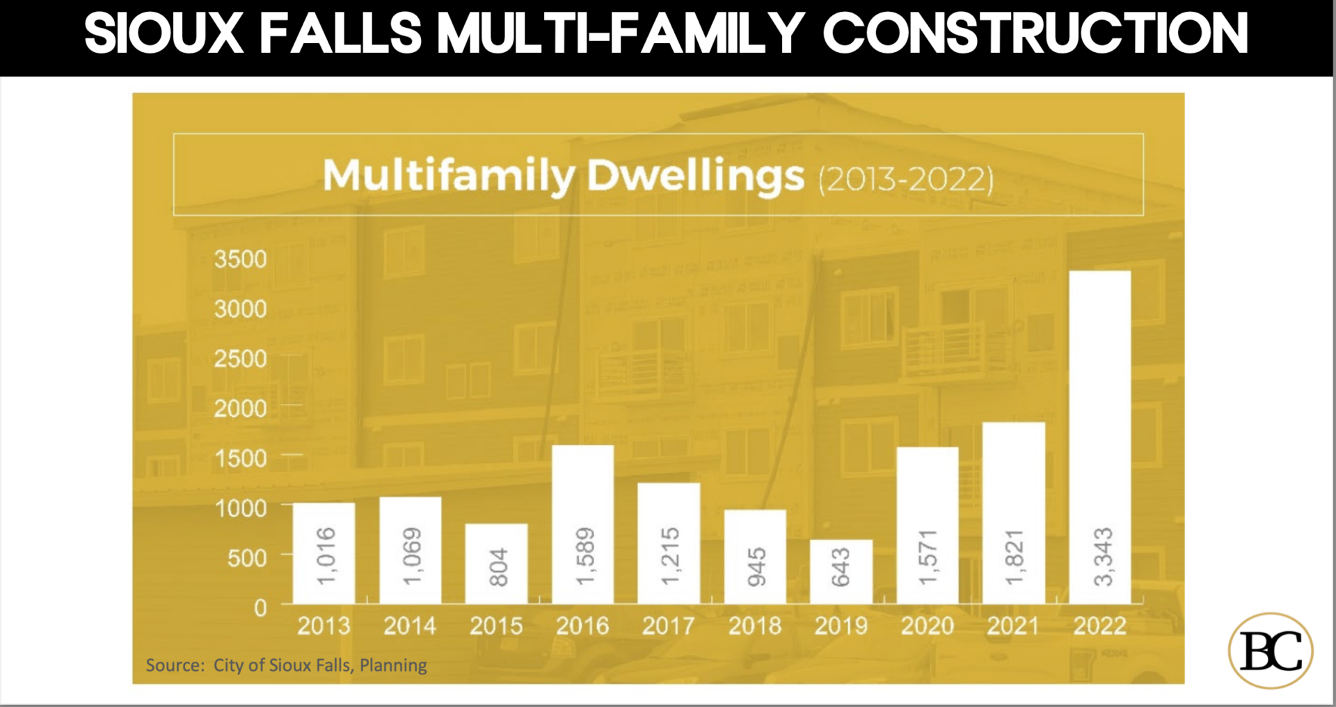 “We’re not overbuilding the Sioux Falls multifamily market at this point. It’s a nice contrast to the national market. We’re looking pretty good with multifamily. In fact, we’re looking really good.”