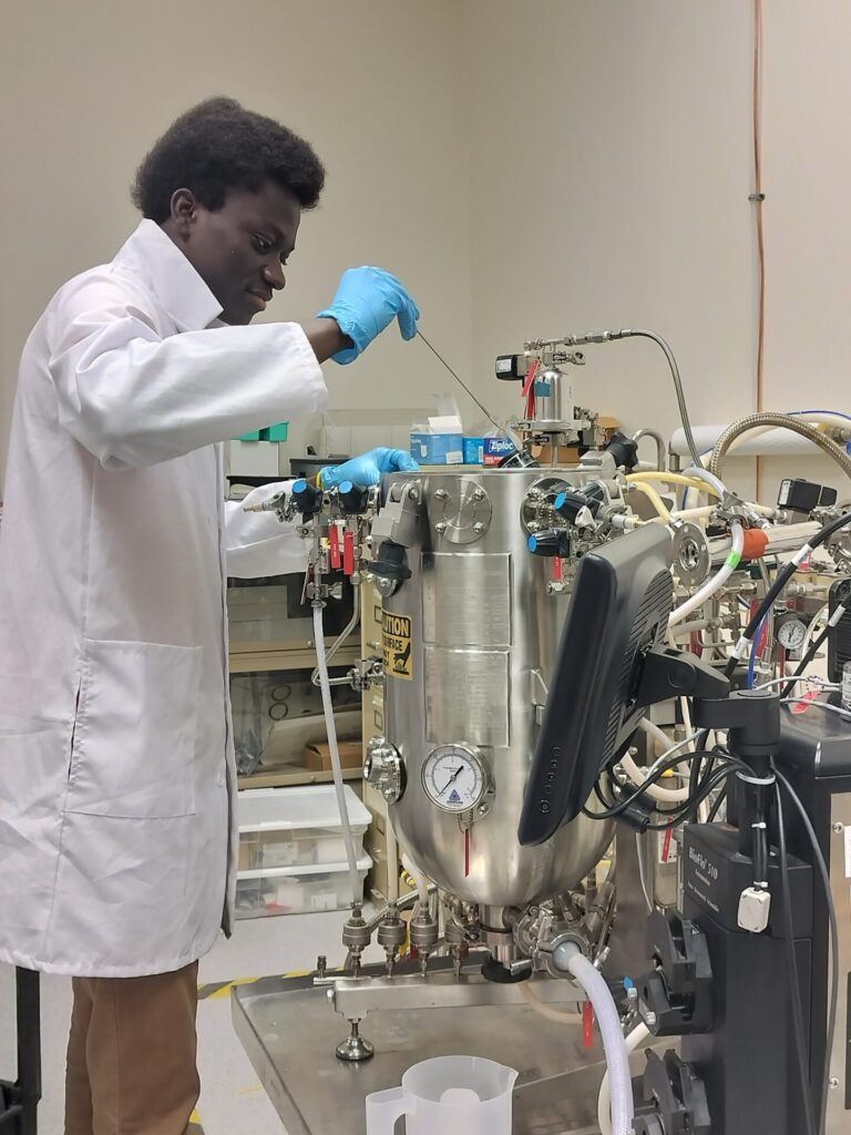 Tetty’s internship will allow him to participate in hands-on projects that contribute to the development of sustainable technologies, such as the corn stover-derived polyhydroxyalkanoates, or PHA, production project. This project aims to create biodegradable plastics from agricultural waste, helping address environmental concerns while supporting the biotechnology sector.