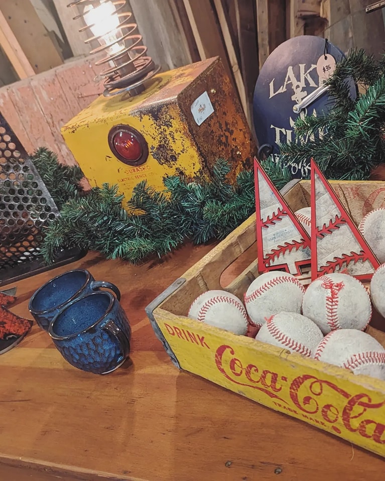 The variety of work on display at SplitRock Furniture showcases local artists creating with reclaimed wood, repurposed materials, metal art, handmade bots, ceramics, reclaimed baseballs and more.